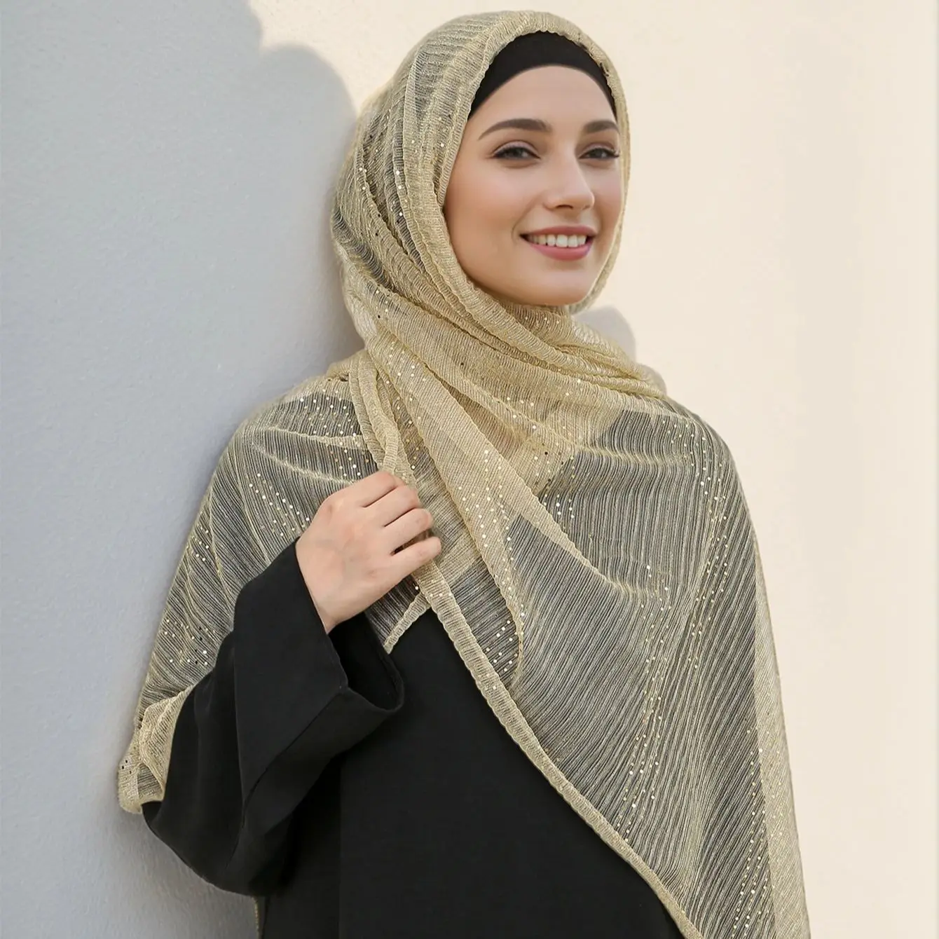 Hijabs à Paillettes avec Strass pour Femme, Châle Islamique Long, Écharpe de Tête, Couverture Complète, Rond Hijab, Écharpe de Sauna Musulmane Unie |