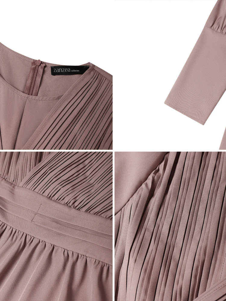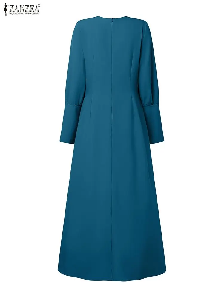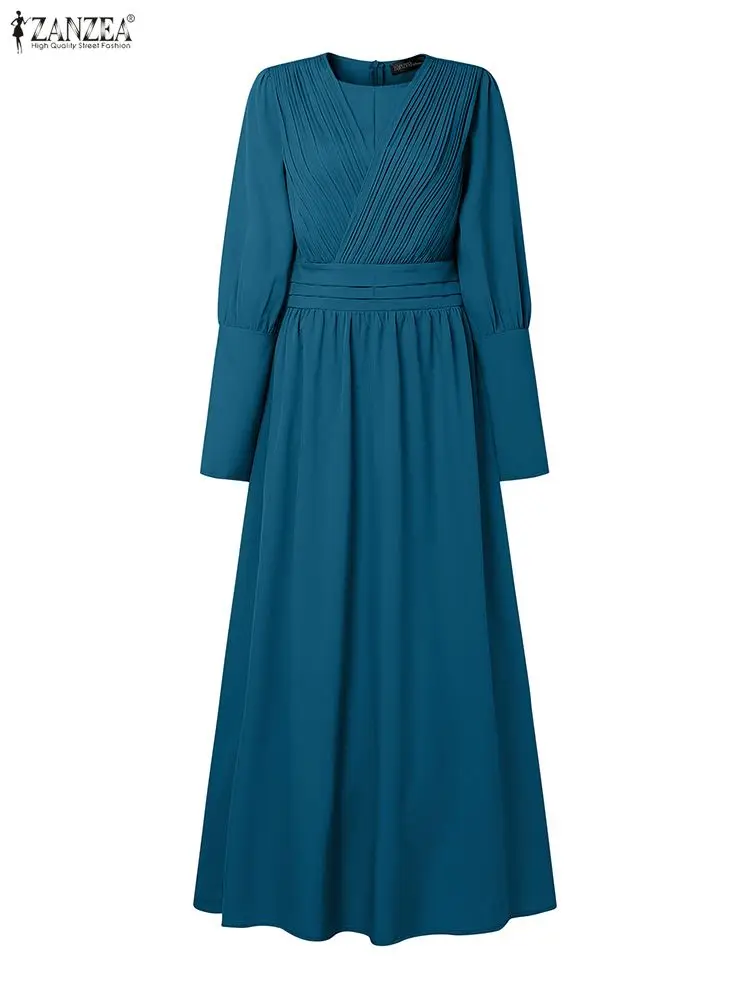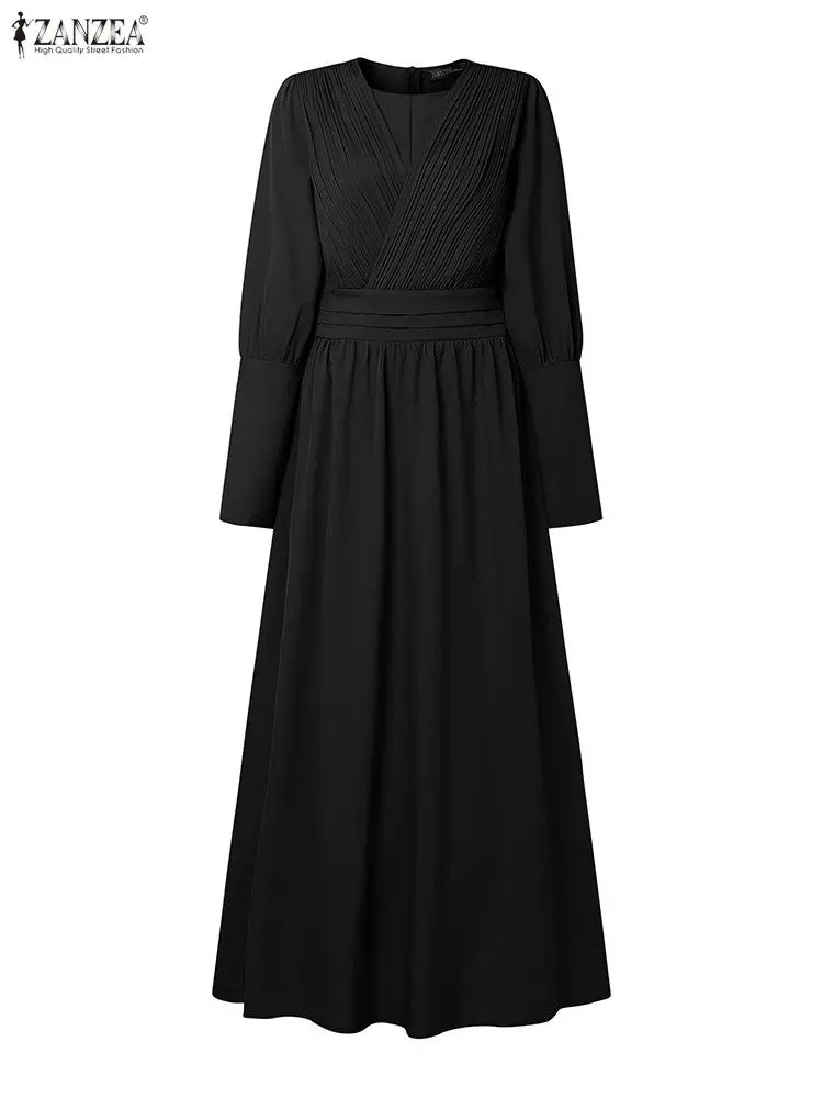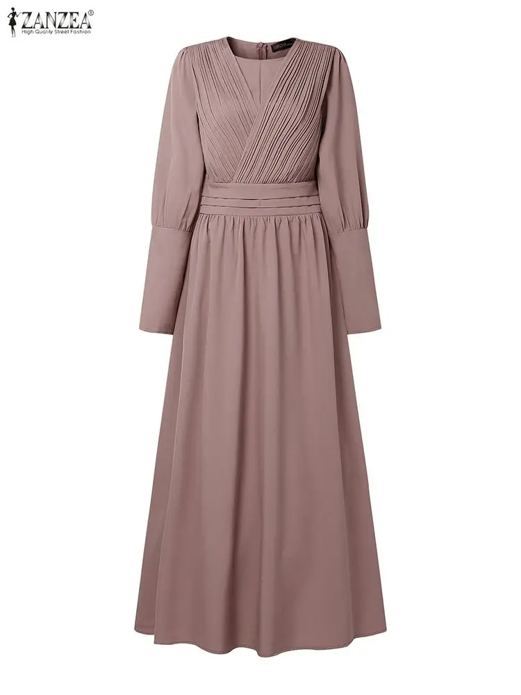 Hijabs femmes modeste Pintuck détaillé Robes longues mode longue Gigot manches taille haute Abaya Robes ZANZEA femme musulmane vêtements