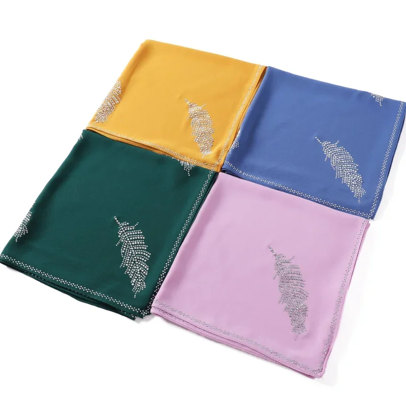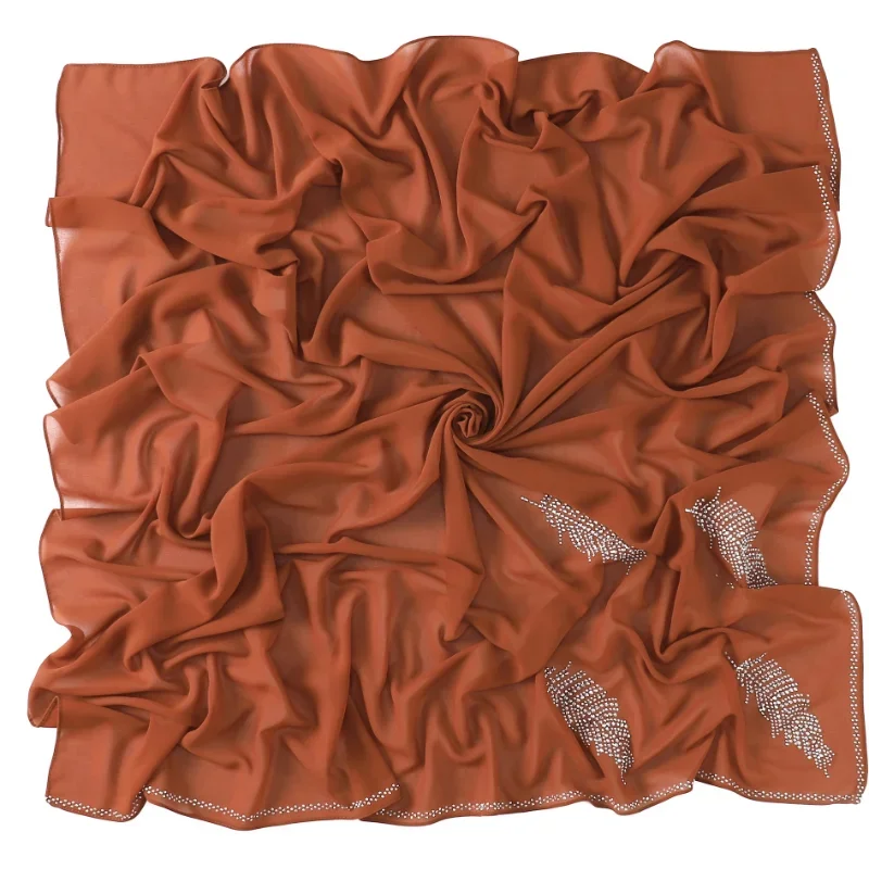 Hijabs femmes Turban musulman malaisien solide perle en mousseline de soie carré mode feuille perceuse chaude bandeau mode indonésien Monochrome |