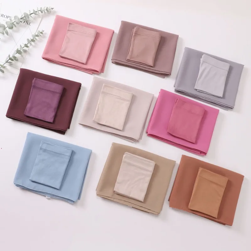 Hijabs foulard sous-écharpe casquettes en gros en mousseline de soie longue serviette avec lait soie fond casquette couleur unie moyen-orient enveloppes pour femmes |