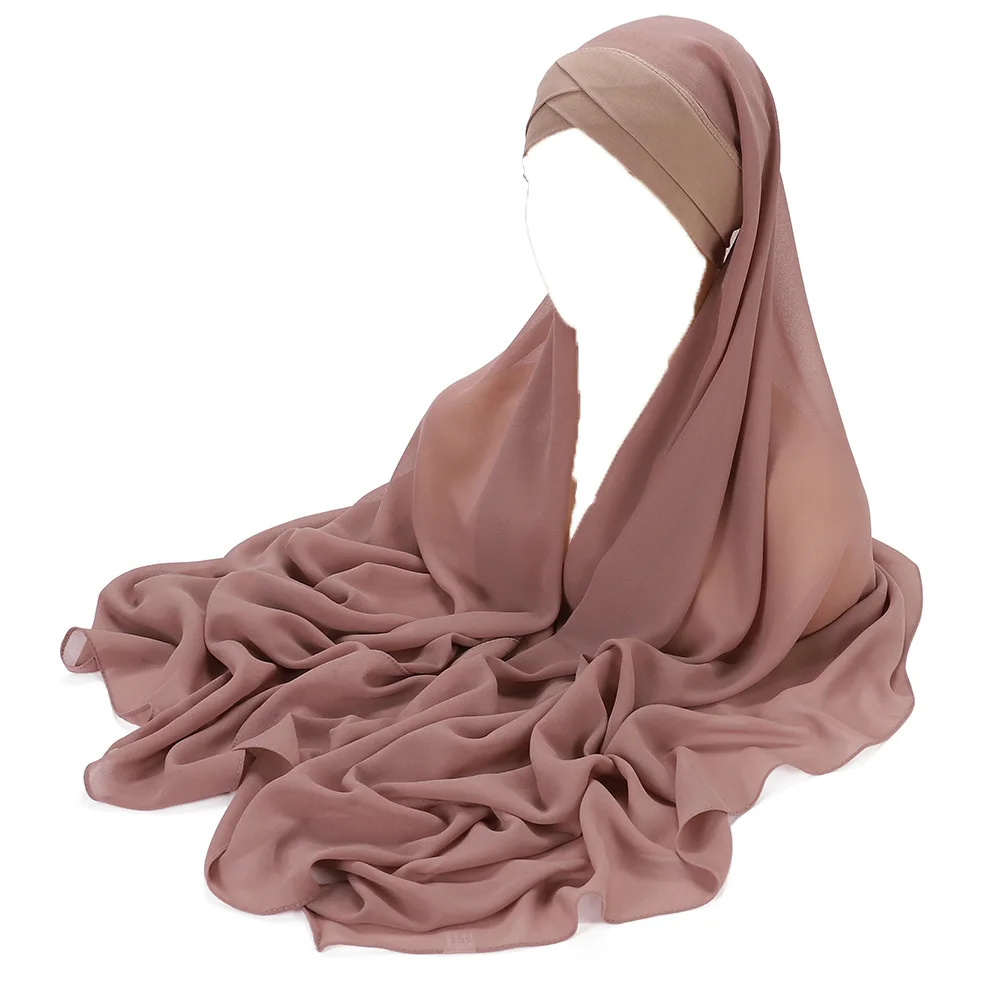 Hijabs instantanés pour femmes, écharpe Hijab en mousseline de soie avec casquettes en Jersey croisé, Bonnet de conception de marque, écharpe musulmane pour femmes, sous-écharpe islamique