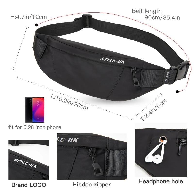 Hk Fanny Pack noir étanche argent ceinture sac hommes sac à main adolescent voyage portefeuille ceinture mâle taille sacs étui à cigarettes pour téléphone |