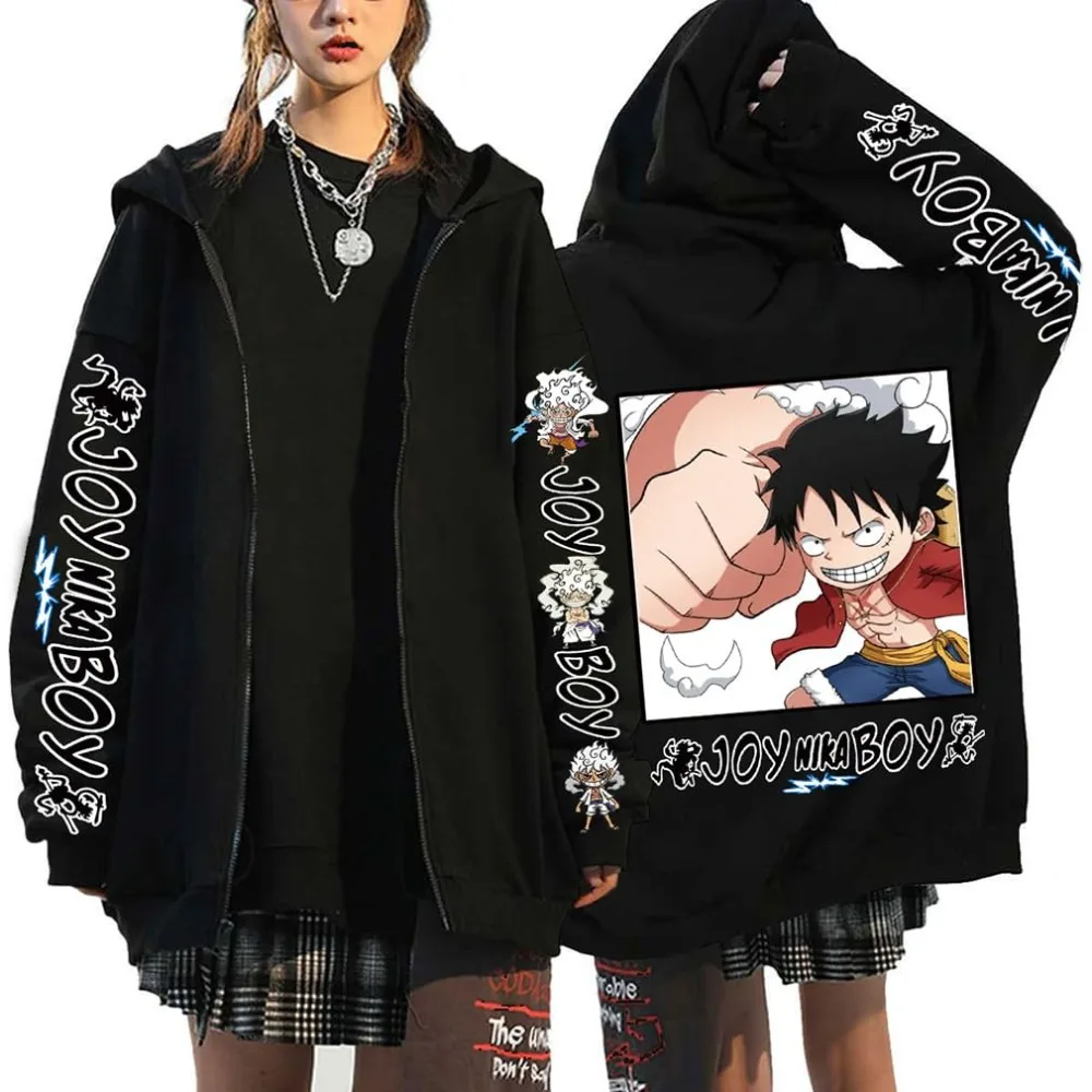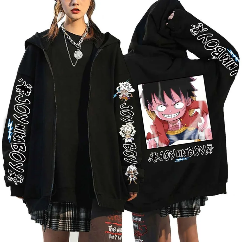 Hommes Anime une pièce Harajuku sweat à capuche avec fermeture éclair 2025 automne hiver Streetwear Vintage pull surdimensionné femmes à manches longues haut unisexe |