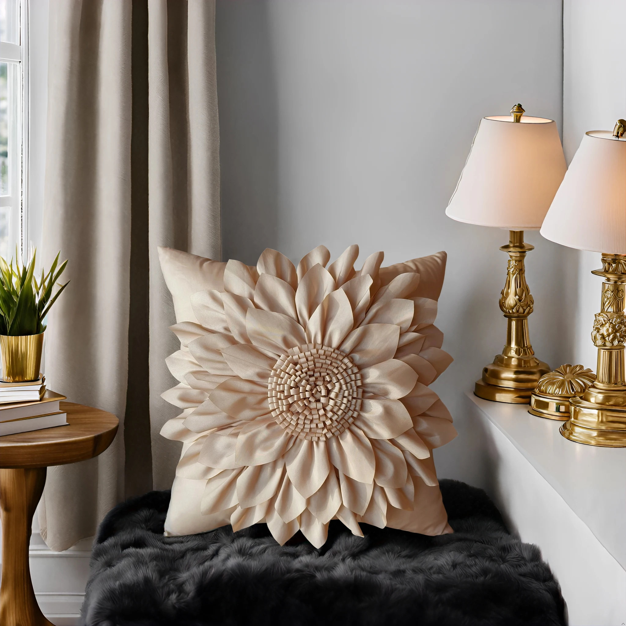 Housses de coussin décoratives beiges pour canapé, taie d'oreiller tournesol 3D, luxe, fait à la main, style bohémien, Taupe |