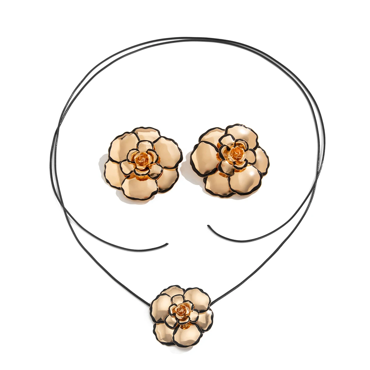 Ingemark élégant grande fleur de Rose collier ras du cou boucles d’oreilles pour femmes Goth réglable corde chaîne mer ensemble de bijoux de mariée cadeau