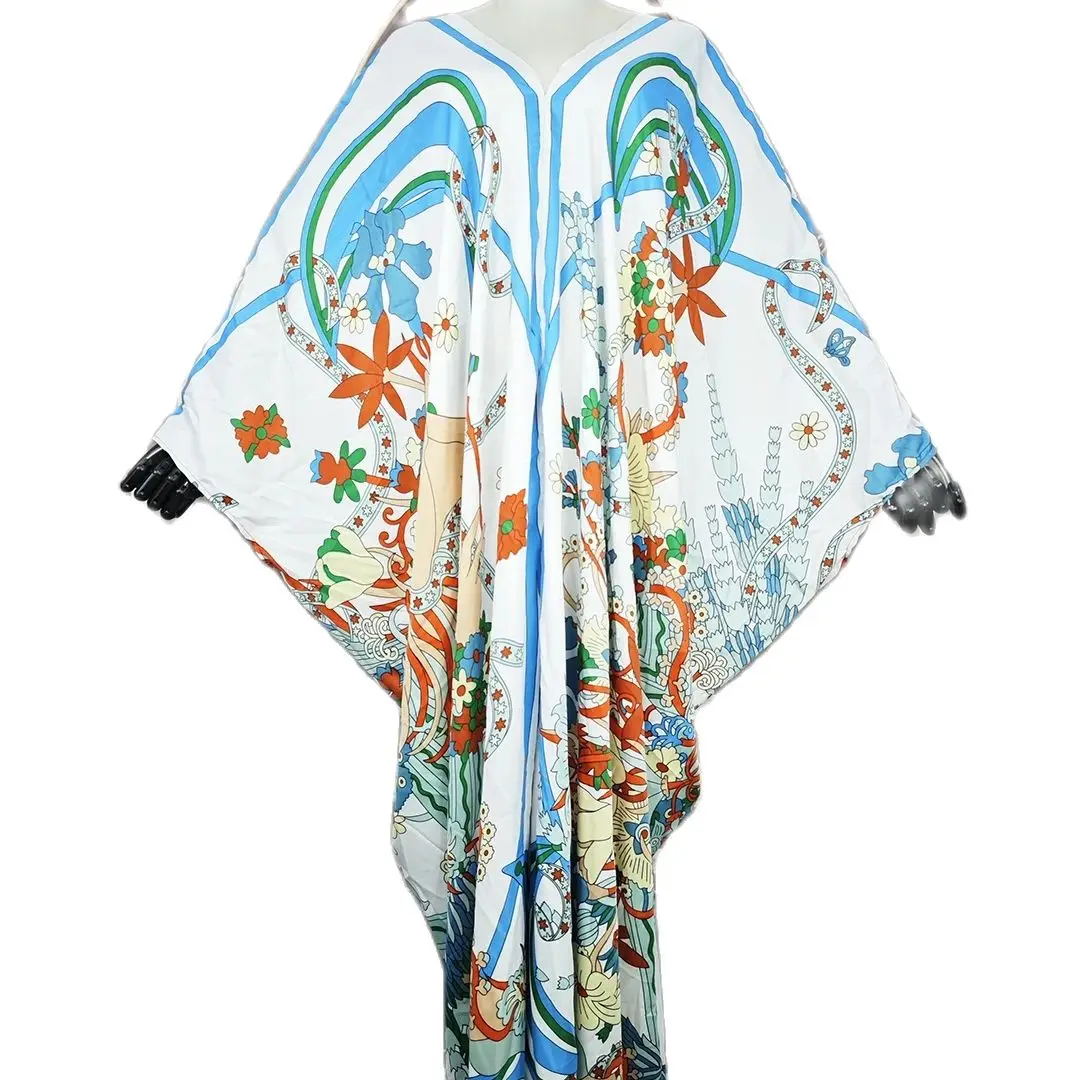 InjKaftan-Robe longue à imprimé géométrique, col en v, style boho, tenue de plage, pour fête, club, été |