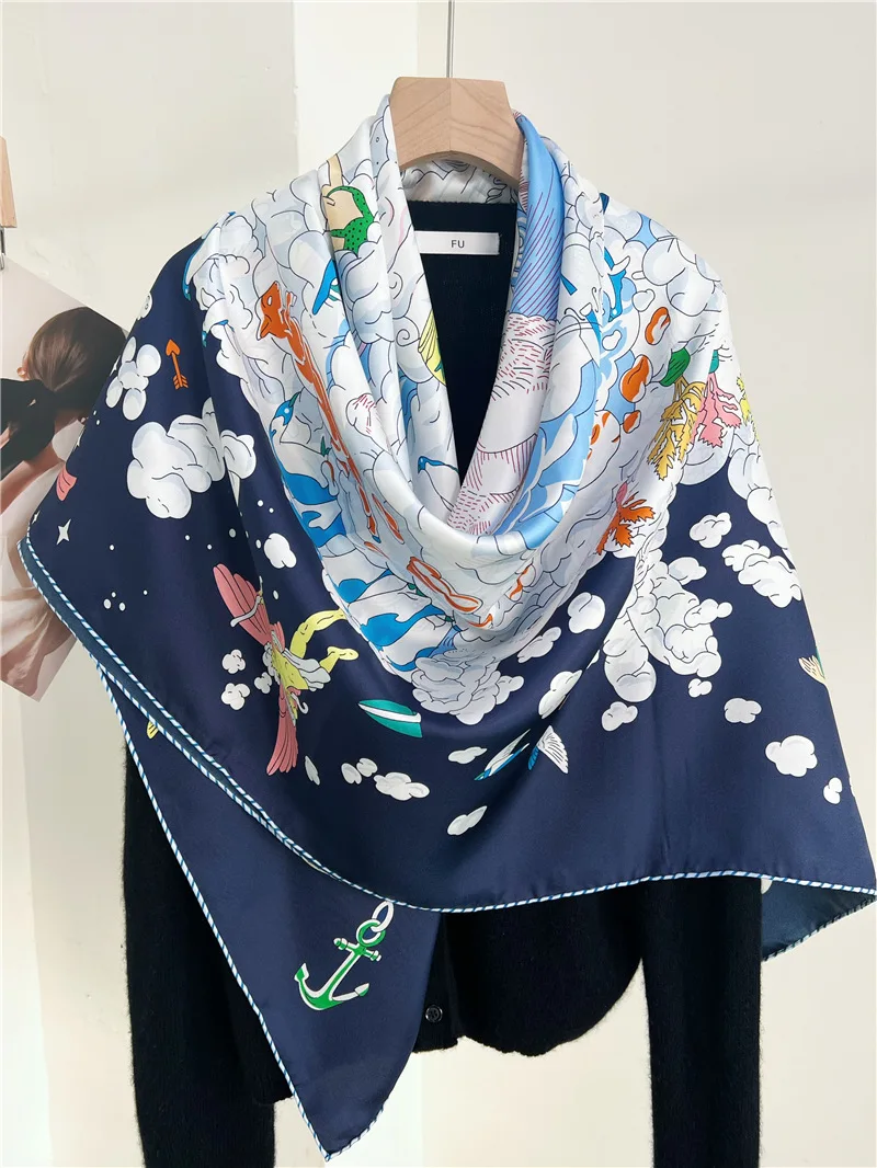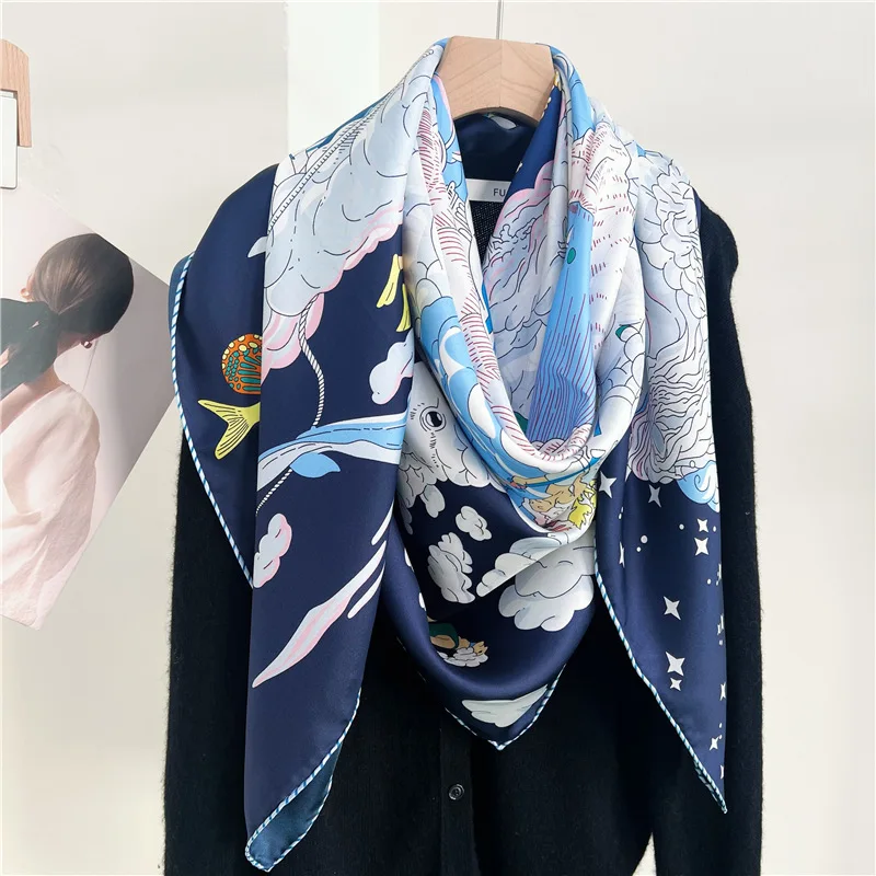 Injplanchers f-Châles à Bords Roulés pour Femme, Grand Bandana, Ceinture, Foulard pour Cheveux et Cou, Accessoires de Créateur, Printemps |