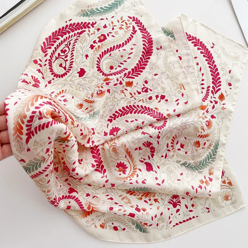 InjSquare-Foulard de Luxe en Satin Doux à Imprimé Floral pour Femme, Bandeau de Tête, Hijab, Sauna, Sac, Ruban |