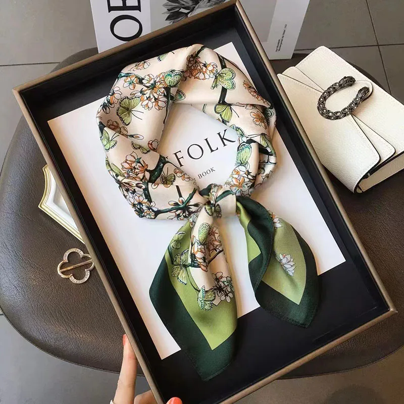 InjSquare-Foulard imprimé floral pour femme, foulard de la présidence, Lady Soft Satin, aught, châle, enveloppes, bandeau, hijab, cadeaux de tête, design de luxe |