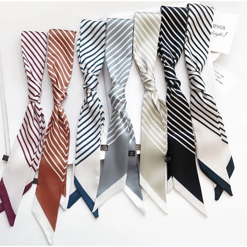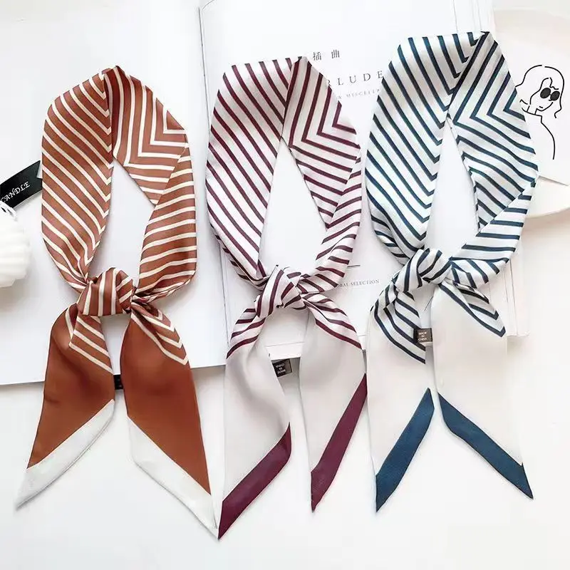 Ins petite écharpe en soie, rayures simples, mode féminine, écharpe polyvalente et professionnelle, banderole de ruban décoratif |