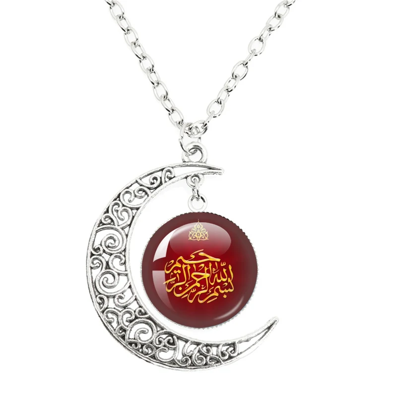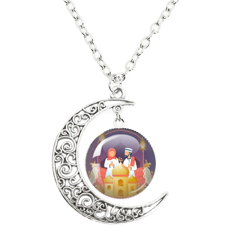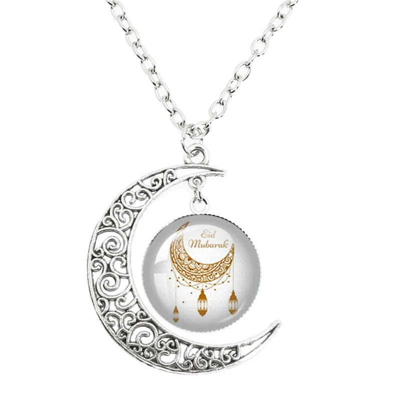 Islam Allah musulman lune collier Murabak Ramadan Kareem rond verre pendentif cadeaux donner des amis bijoux