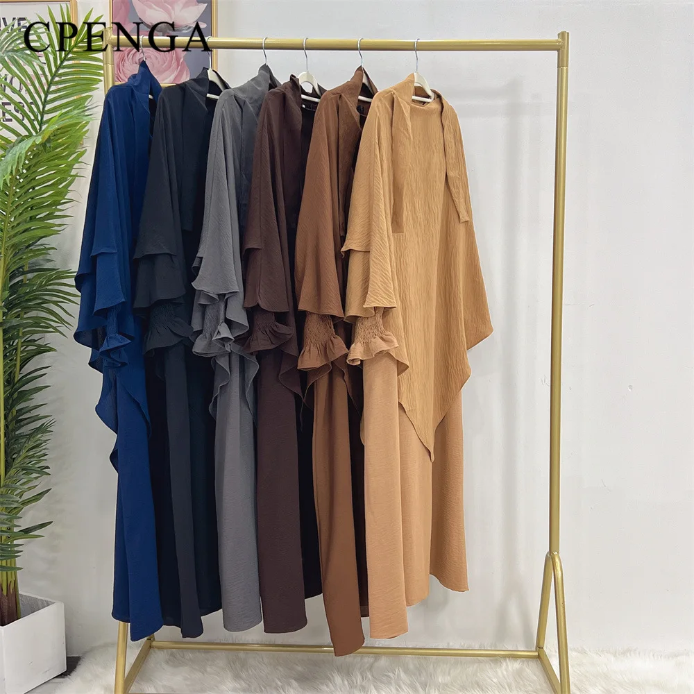 Jilbab-Robe de Prière pour Femme Musulmane, Vêtements de Ramadan Islam, Ensemble 2 Pièces, Abaya de Dubaï, tiens imar, Hijab Long, Vêtements Uni |