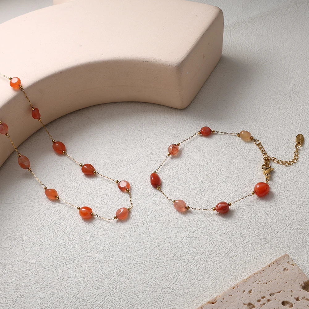 JINHUI-Ensemble de bijoux imperméables pour femme, collier perlé, bracelet en acier inoxydable, collier de charbon, style JOBoho, cheminée magnifique, 216.239. |
