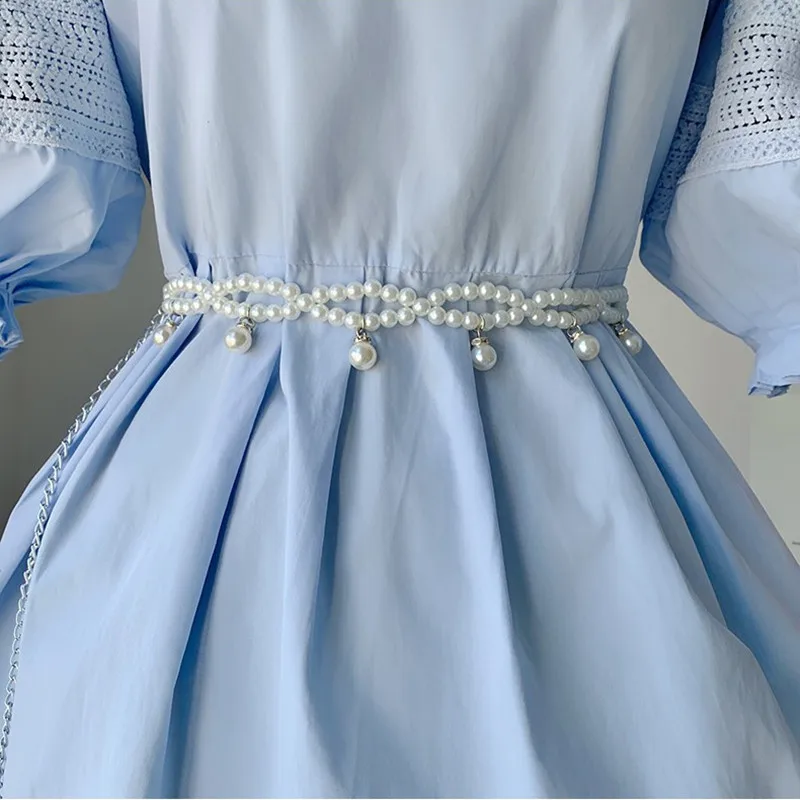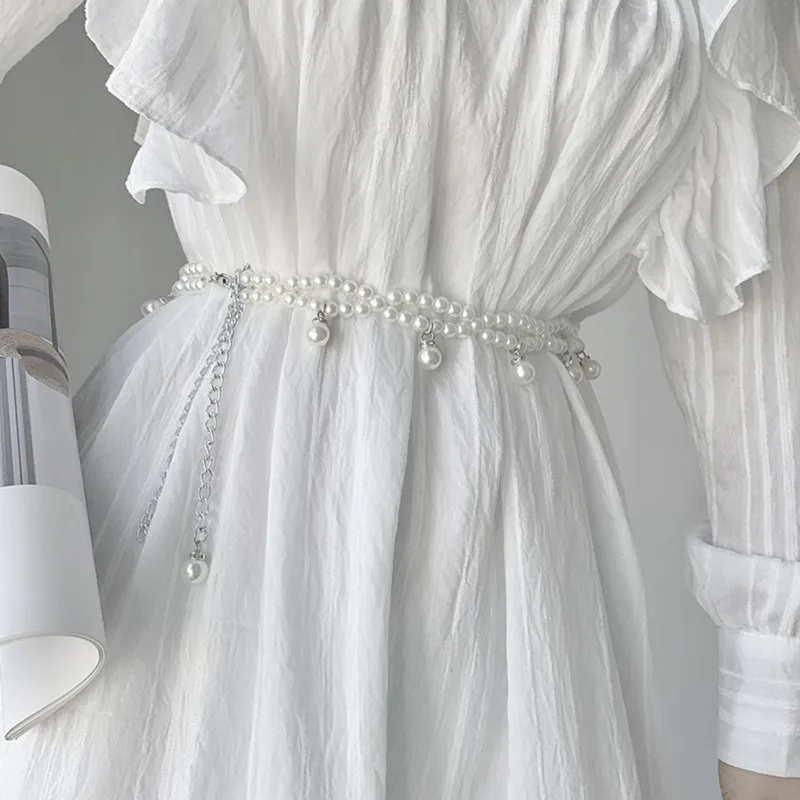 JOWomen’s Large Pearl Waist Elastic Belt, Diamond Decoration, All-Match Skirt, Fashion Casual fraîchement Design Girdle, Gothic