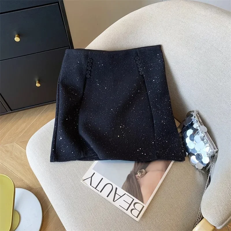 Jupe courte à paillettes de Style français pour femmes, grande taille, embellissement lourd, diamant, transfert de chaleur, jupe trapèze, printemps automne |
