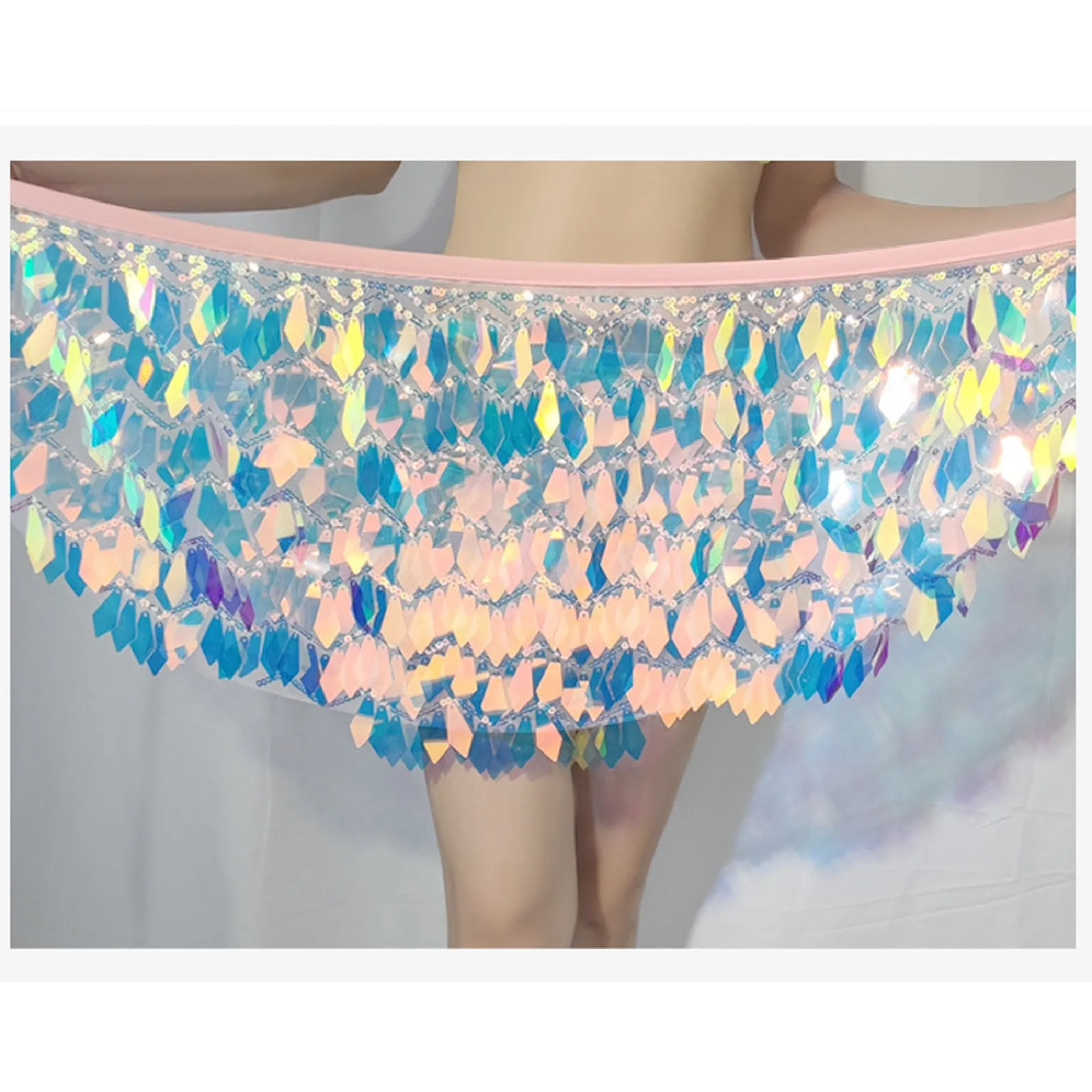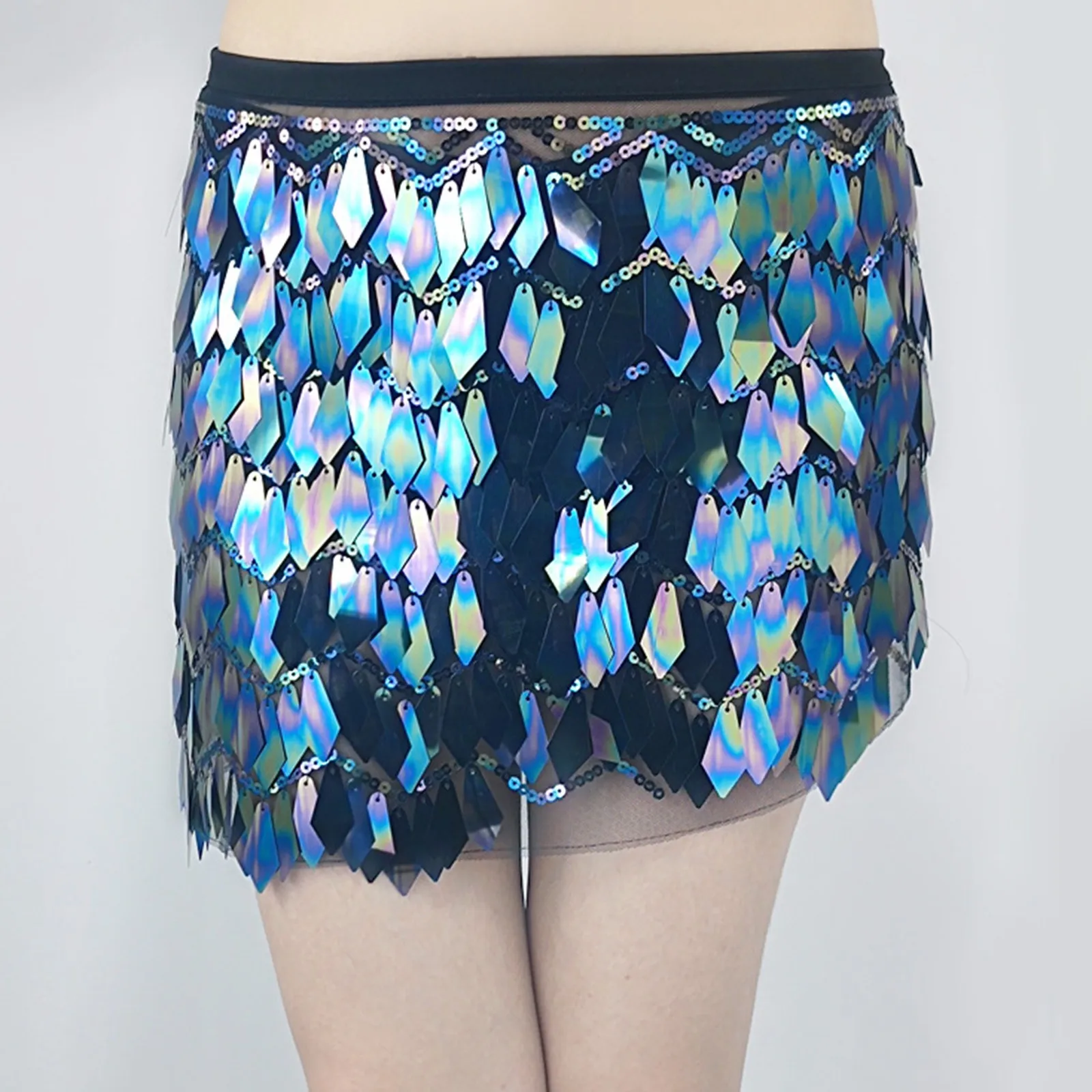 Jupe de danse du ventre à paillettes pour femmes, mini jupes kly de Rotterdam, écharpe de hanche, costume de fête rave, ceinture, festival, tenue de performance de carnaval |