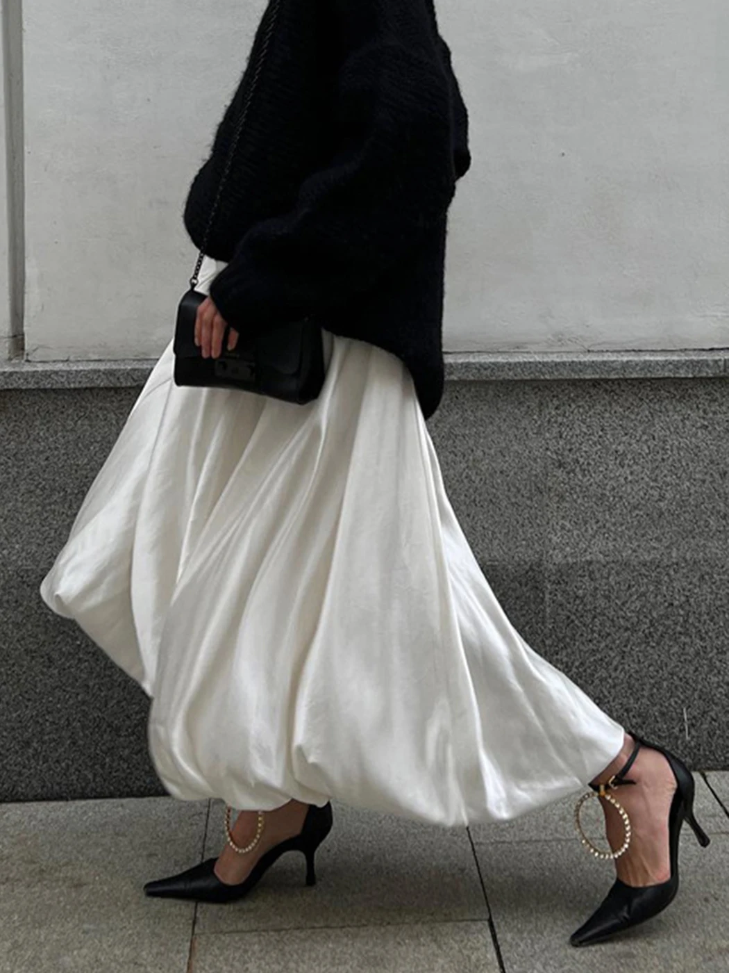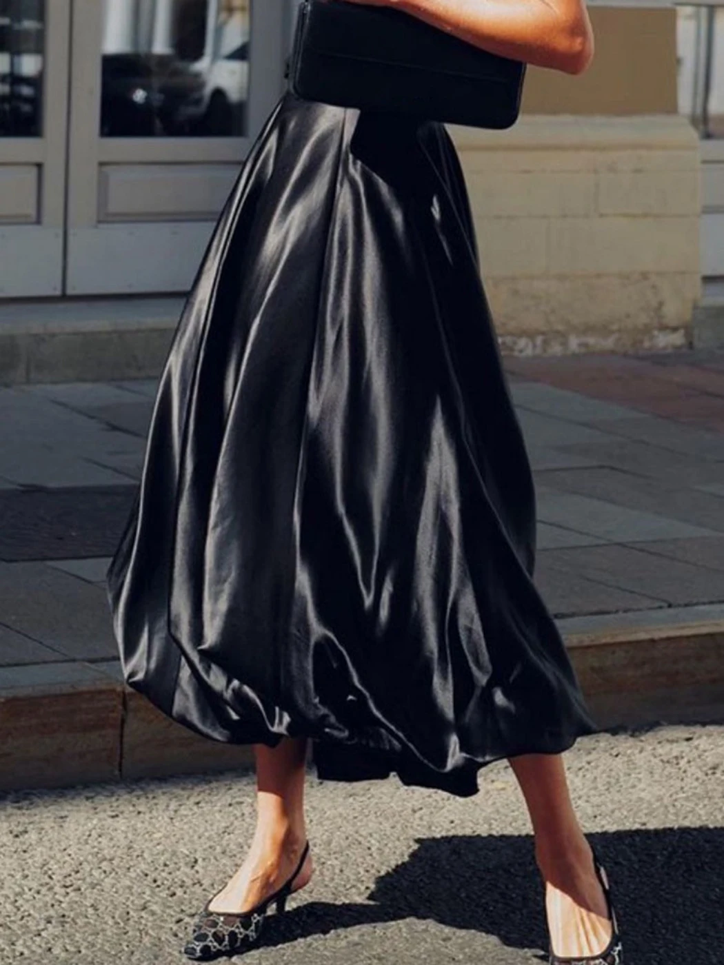 Jupe Trapèze Drapée en Satin pour Femme, Taille Haute, Mode Élégante, Couleur Unie, Fermeture Éclair, Simple, Tutu Français, Printemps Été 2023Jupe Trapèze Drapée en Satin pour Femme, Taille Haute, Mode Élégante, Couleur Unie, Fermeture Éclair, Simple, Tutu Français, Printemps Été 2023