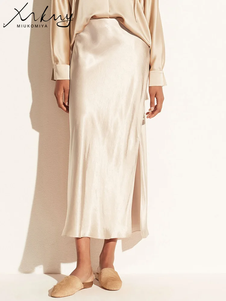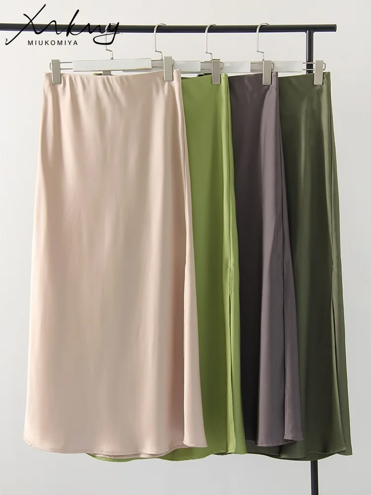 Jupes longues en Satin pour femmes, jupe d'été de haute qualité avec fente sur le côté, en soie, élégantes, noires, Maxi, de luxe, 2025 |
