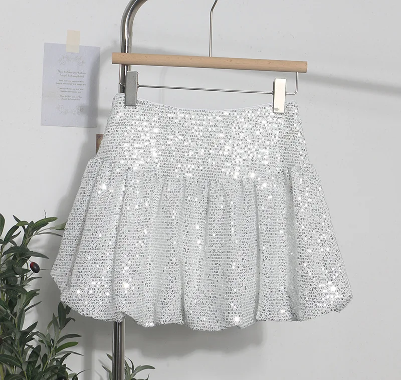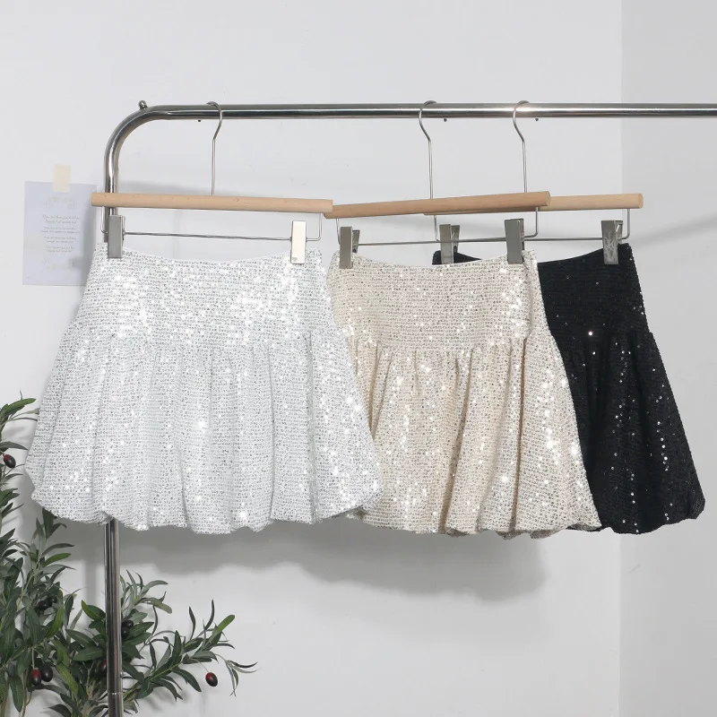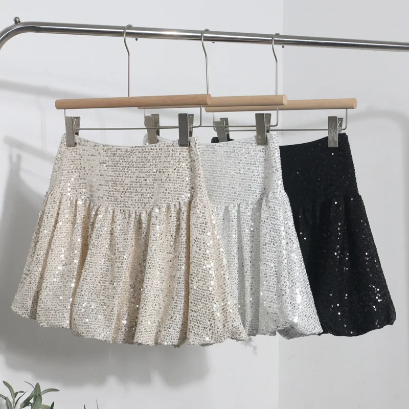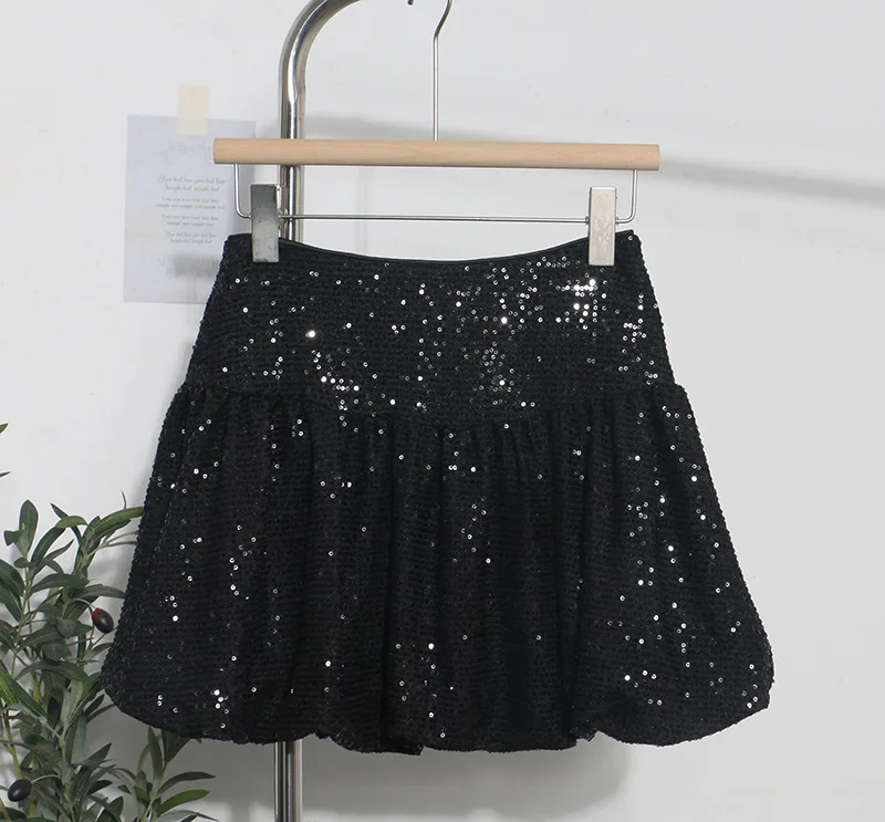 Jupes plissées parapluie en forme de A à paillettes pour femmes