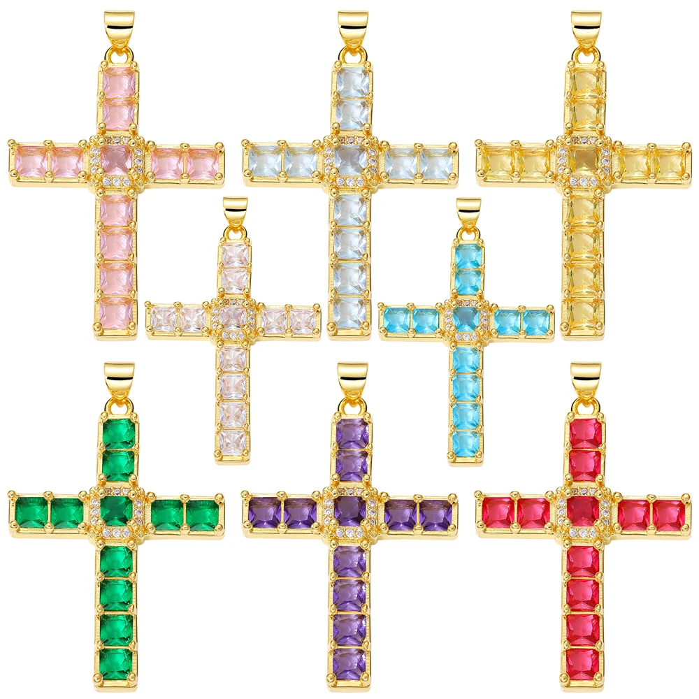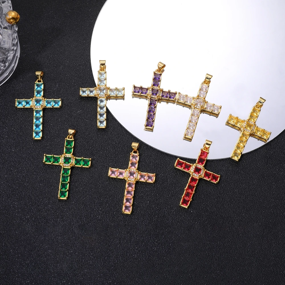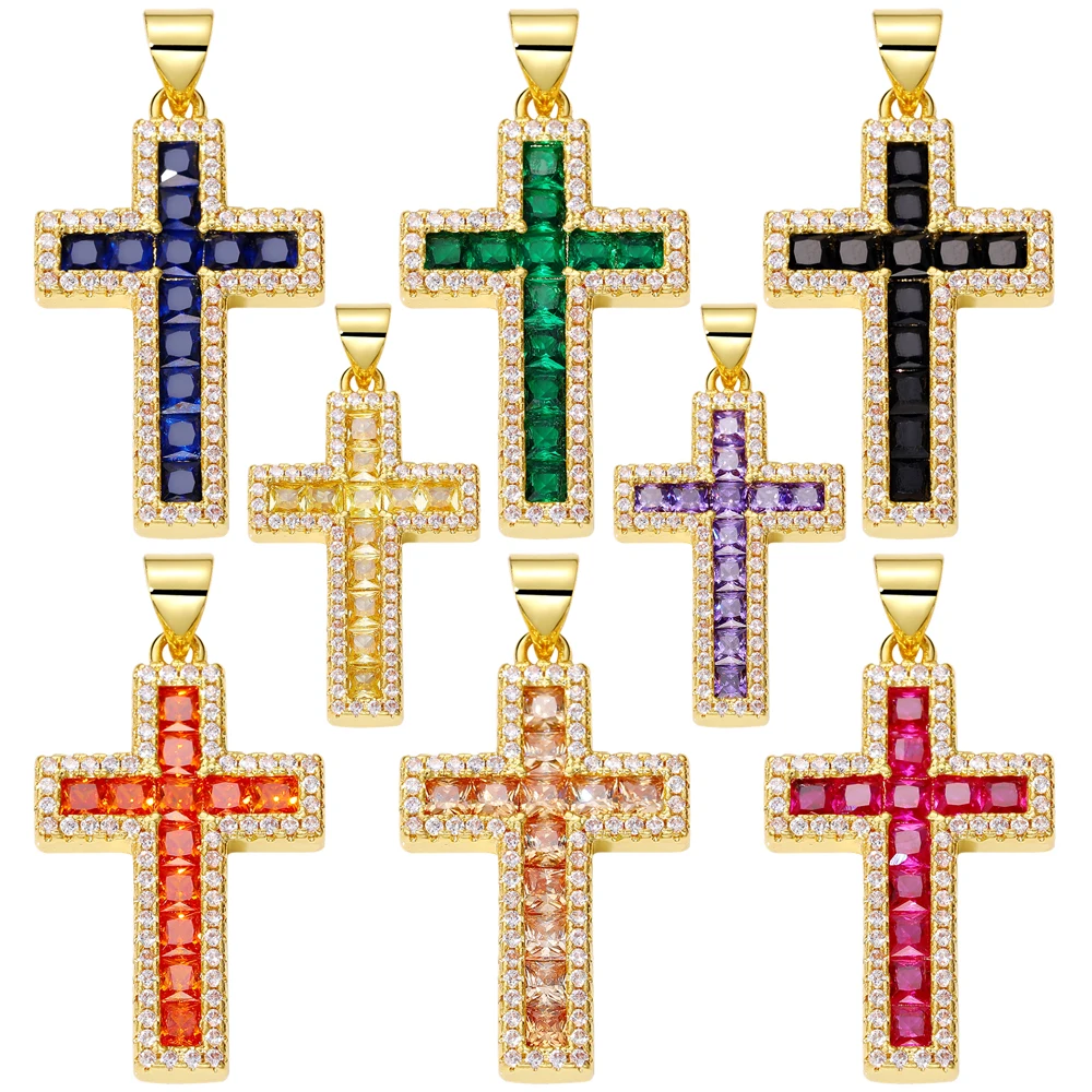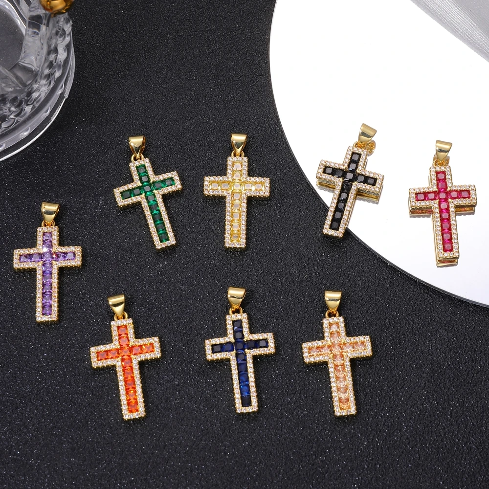 Juya – pendentifs de prière chapelet religieux, fournitures de bijoux, zircone cubique faite à la main, plaqué or 18 carats, breloques croix chrétienne en cuivre