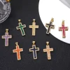Juya – pendentifs de prière chapelet religieux, fournitures de bijoux, zircone cubique faite à la main, plaqué or 18 carats, breloques croix chrétienne en cuivre |