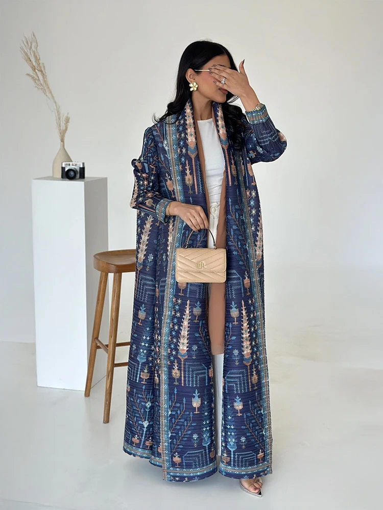 KAF dubaï Abaya luxe manteau de soirée femmes Robe formelle Eid Abaya Ramadan 2025 femme plissé Cardigan à manches longues Trench manteaux |