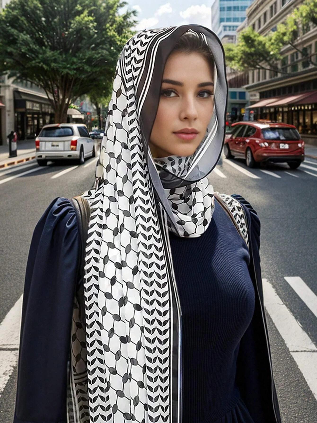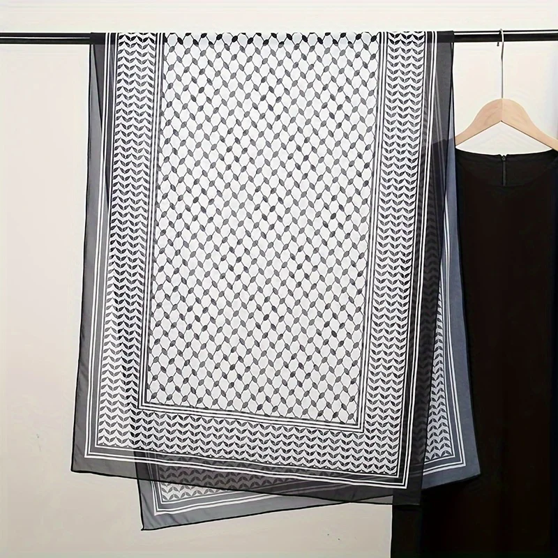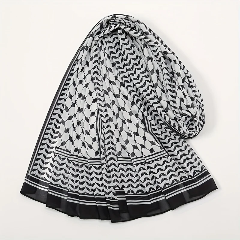 Keffiyeh-Écharpe en mousseline de soie imprimée pour dames musulmanes, Hijab palestinien, Haute qualité, Nouveau, 185x70cm, 2024 |