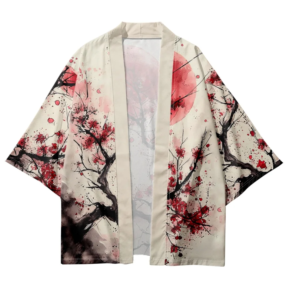 Kimono imprimé fleurs de Style chinois, Streetwear japonais, Cardigan pour femmes et hommes, Harajuku Haori, t-shirts Yukata, vêtements asiatiques