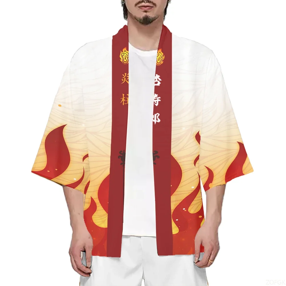 Kimono japonais pour hommes et femmes, Costumes de Cosplay Anime, symbole de flamme, Cardigan pour adolescents, cape, pyjama Hanbok, nouveaux vêtements traditionnels 2024