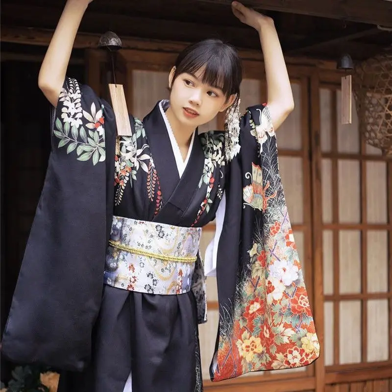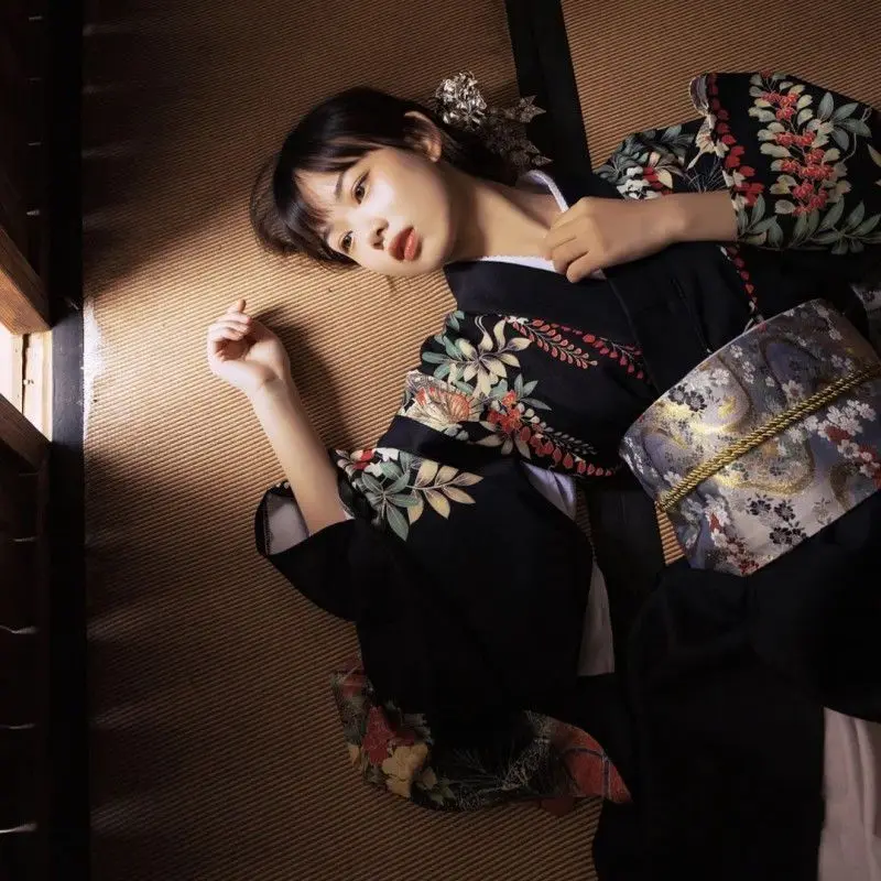 Kimono japonais traditionnel à manches rétro pour femmes, tenue formelle améliorée, photographie, peignoir foncé, 2025 |