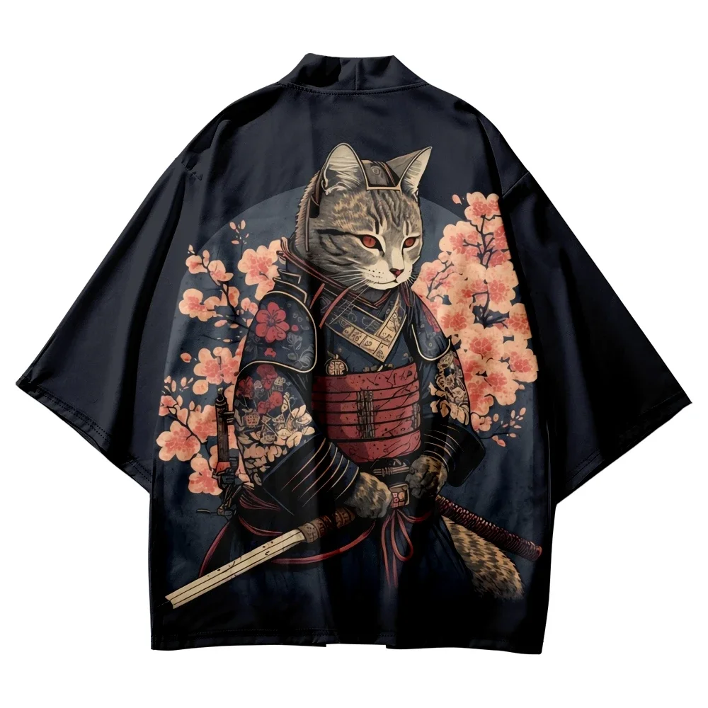 Kimono japonais Yukata samouraï Kimono homme chat imprimé chemise vêtements Harajuku Cardigan pour hommes traditionnel Haori Kimono femmes |