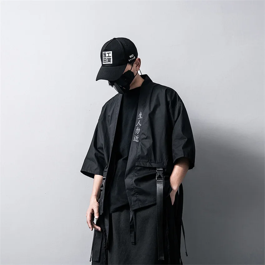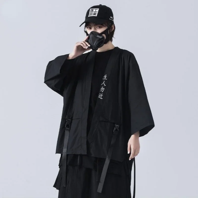 Kimono noir traditionnel japonais, Cardigan Diablo, Samouraï, Ninja Cosplay, Style Hanfu chinois imbibé, Manteau Streetwear, Nouveau, 2024