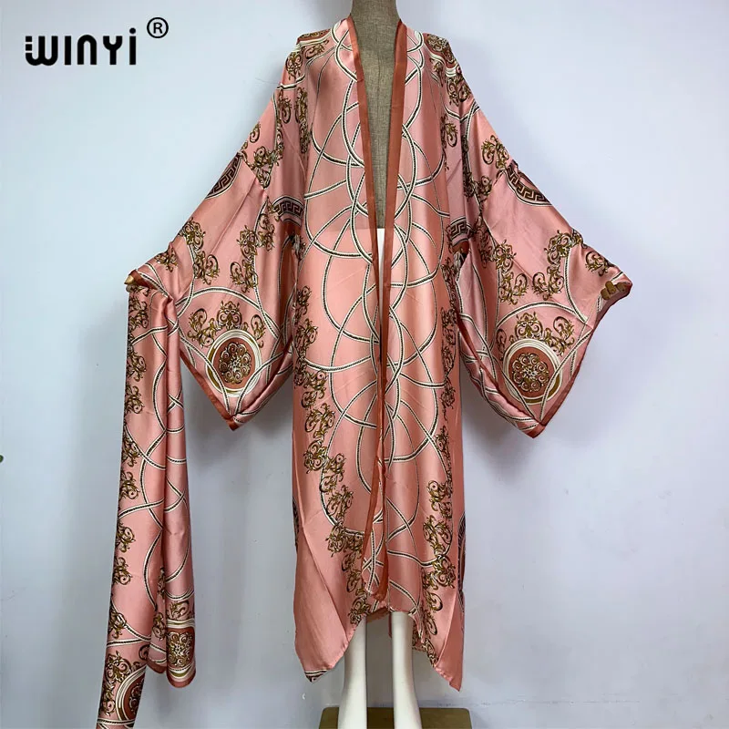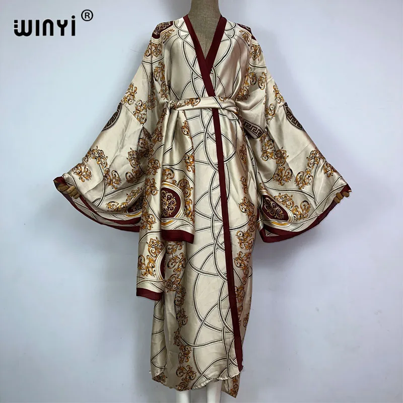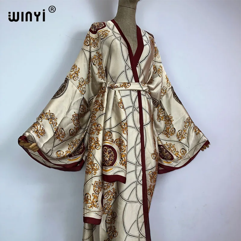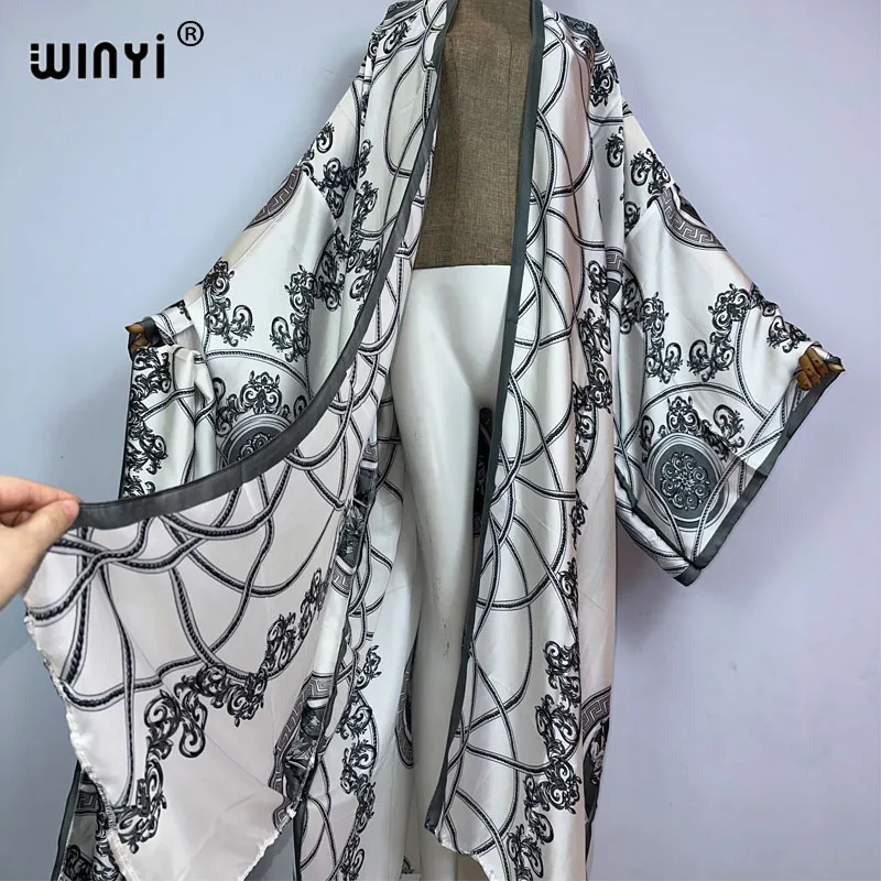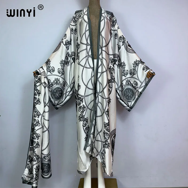 KUWAIT WINYI-Manteau musulman imprimé Boho pour femme, kimono long ouvert devant, kaftan, tunique de plage, robes rondes, 2023 |