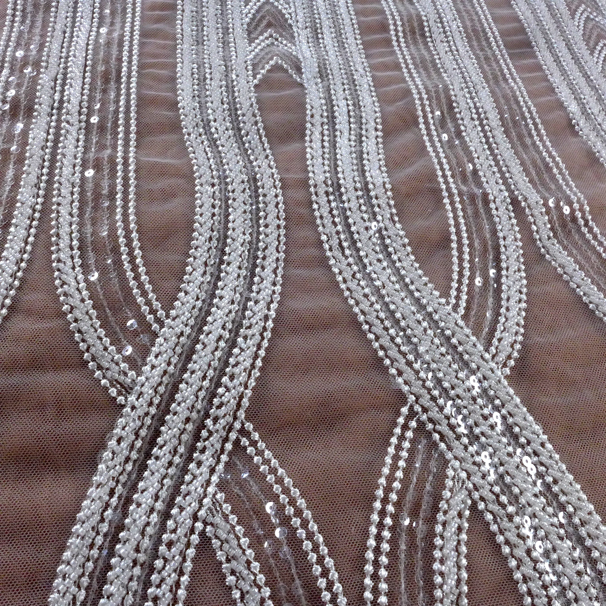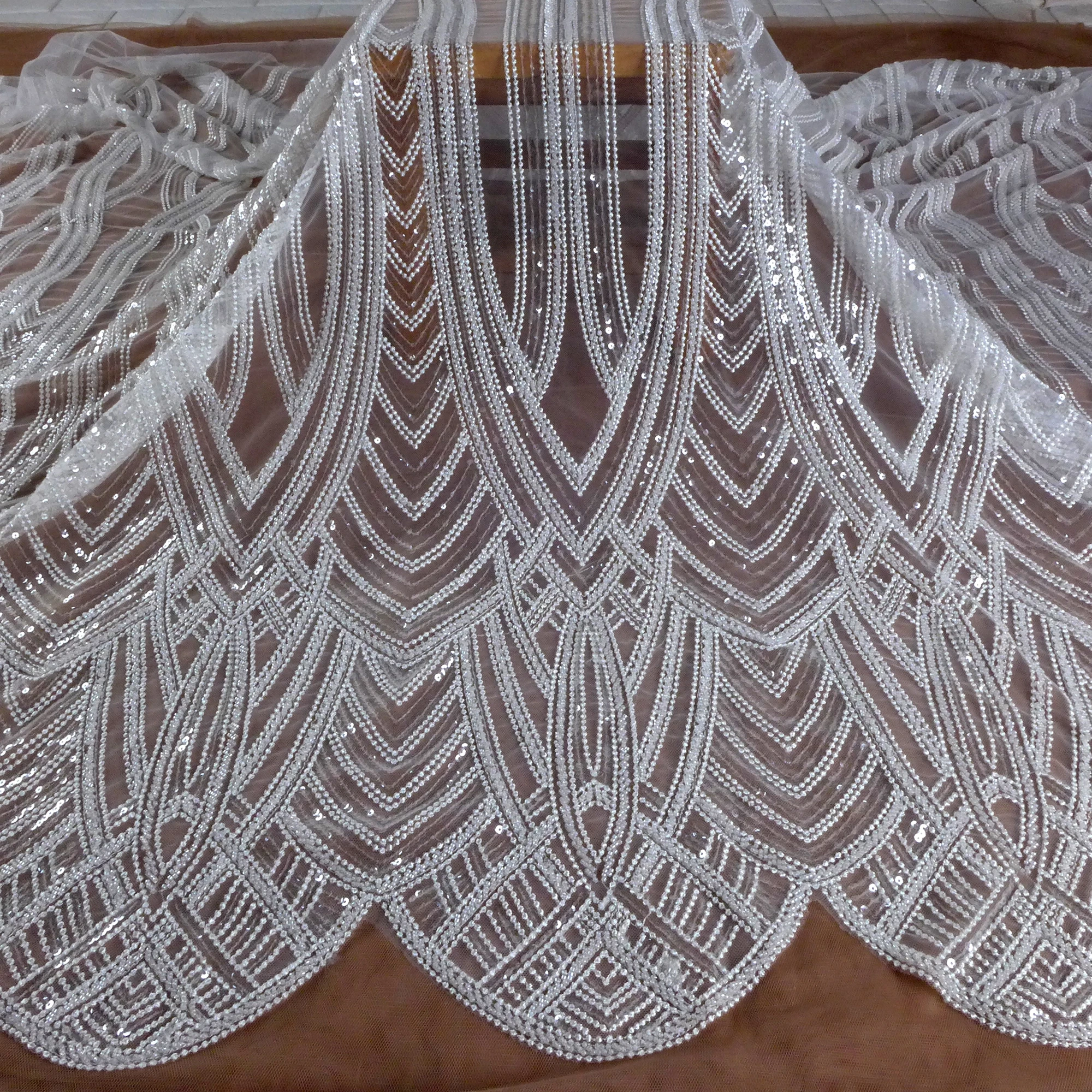 La Belleza-Dentelle Perlée pour Mariée, Tissu à Paillettes, Motifs Longs, Largeur 51 en effet, 1 Yard, 2025 |