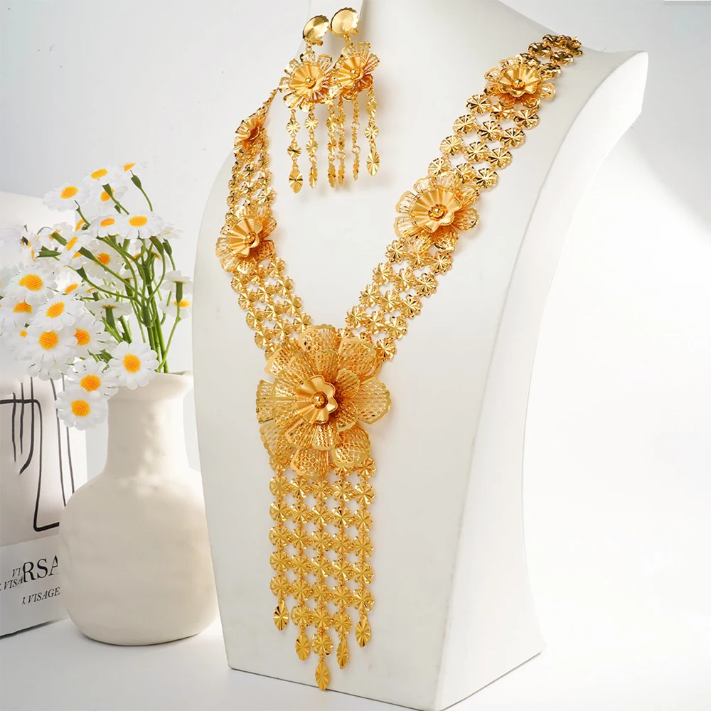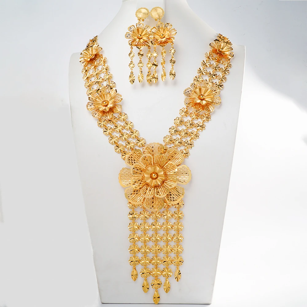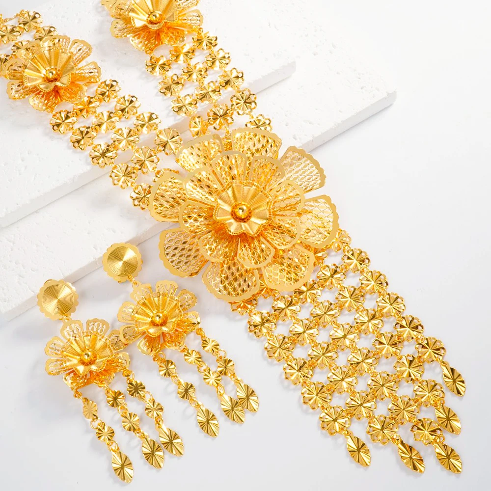 Lager bijoux moyen-orient bijoux femmes gland boucle d'oreille collier fleur ensemble africain fête de mariage cadeau couleur or collier |