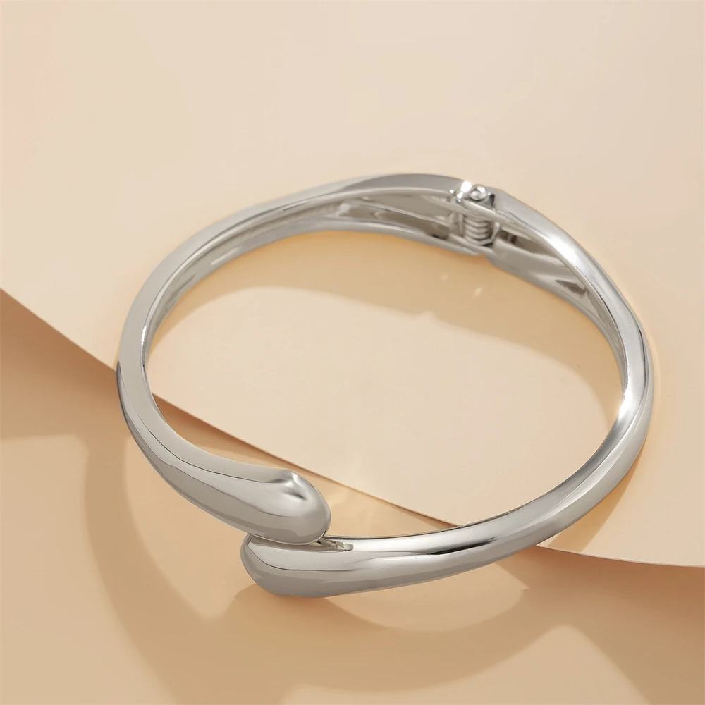 Large anneau de Bracelet en métal pour femmes, couleur or et argent, goutte d'eau épaisse, manchette de poignet ouverte, épais, torsadé irrégulier, bijoux |