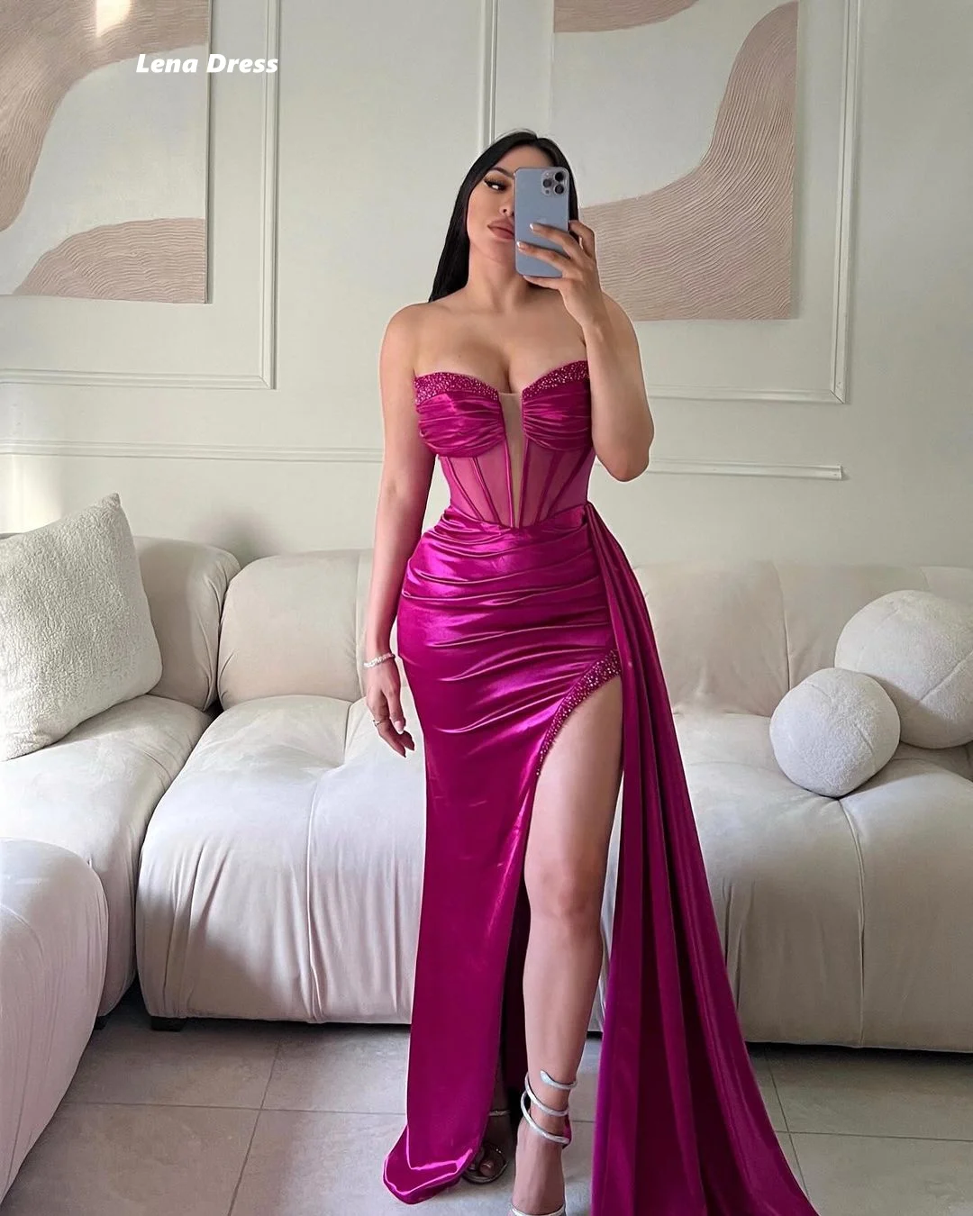 Lena-Robe de soirée en satin saoudien pour femme, épaules dénudées, queue de poisson, fête élégante, occasions spéciales, remise des diplômes |