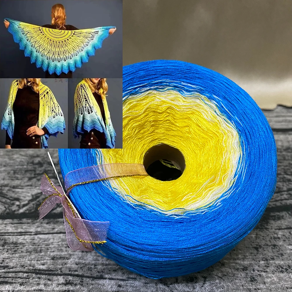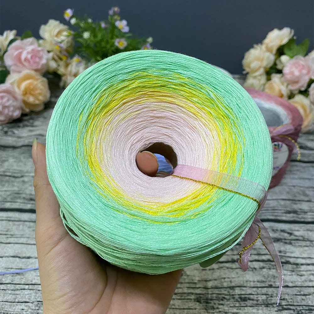 Ligne de gâteau en coton biologique, laine de bébé de couleur dégradée, ligne de tricot faite à la main, ligne au Crochet, pull jupe longue châle, 300g/boule