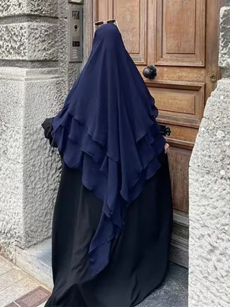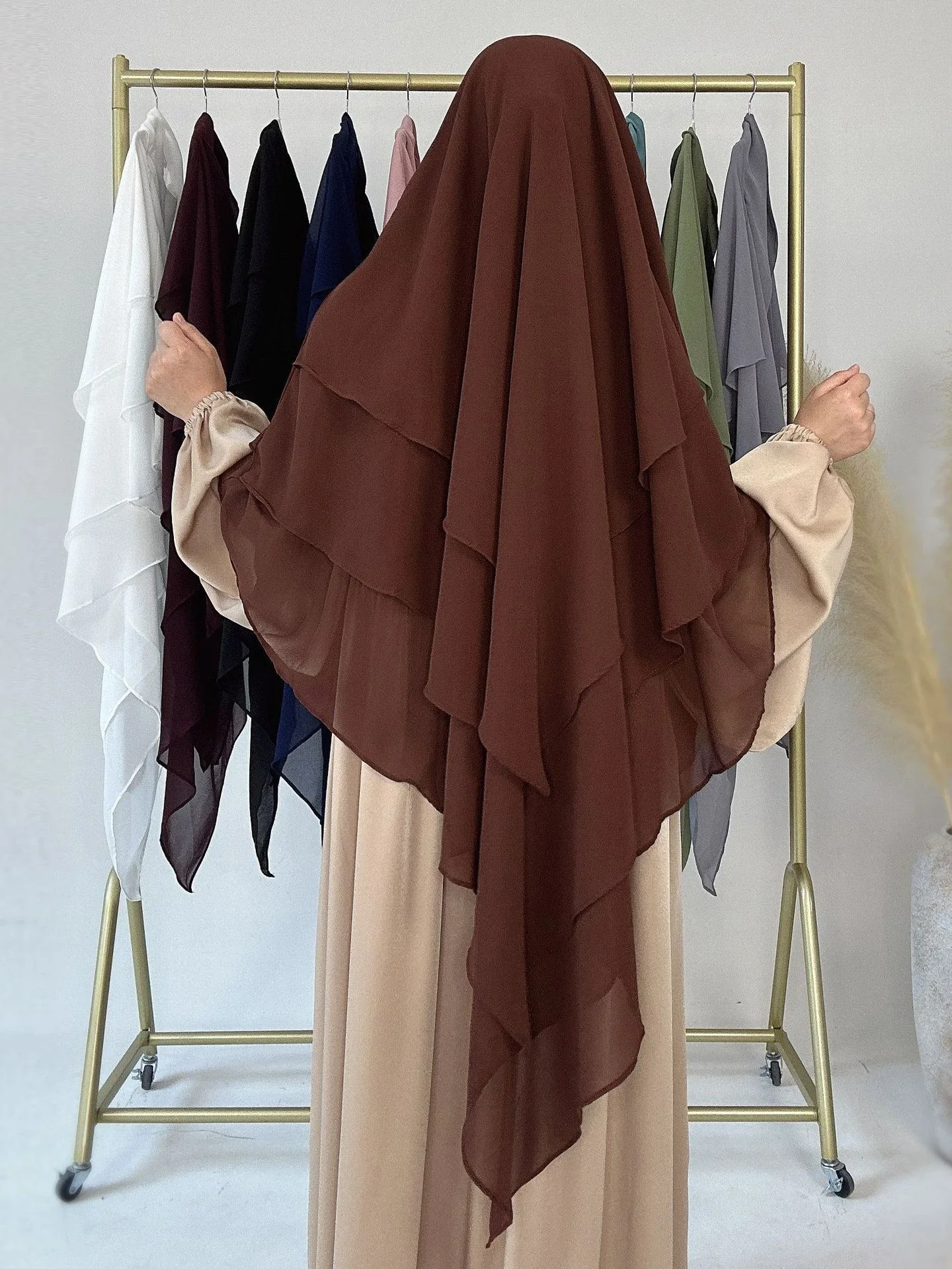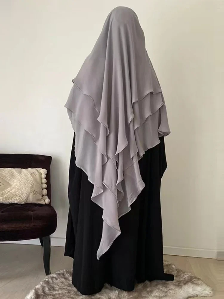 Long Khimar femmes musulmanes Hijab prière Eid 3 couches en mousseline de soie 2025 Hijabs foulard châle voile longue trois couches Djellaba Niqab