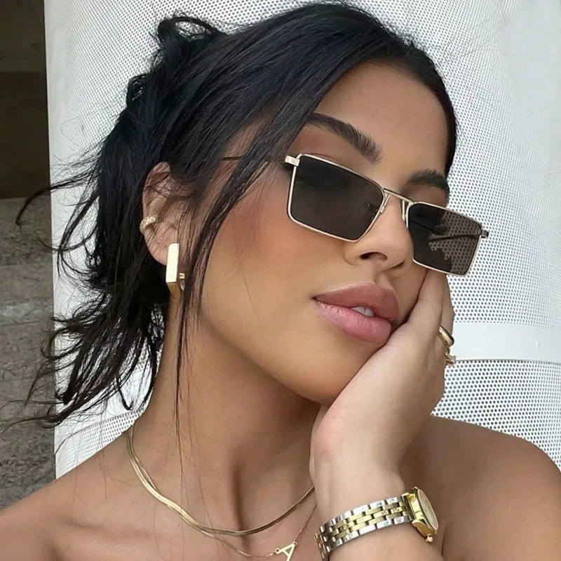 Lunettes de mode rectangulaires en métal pour femmes chics pour un usage quotidien, les déplacements, les vacances et les fêtes universitaires |