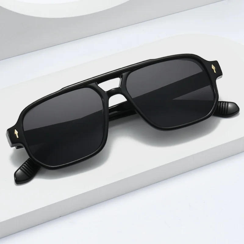 Lunettes de soleil carrées rétro à Double pont pour femmes et hommes, Design de luxe à la mode, Rivets, nuances tendance, UV400, nouvelle collection |