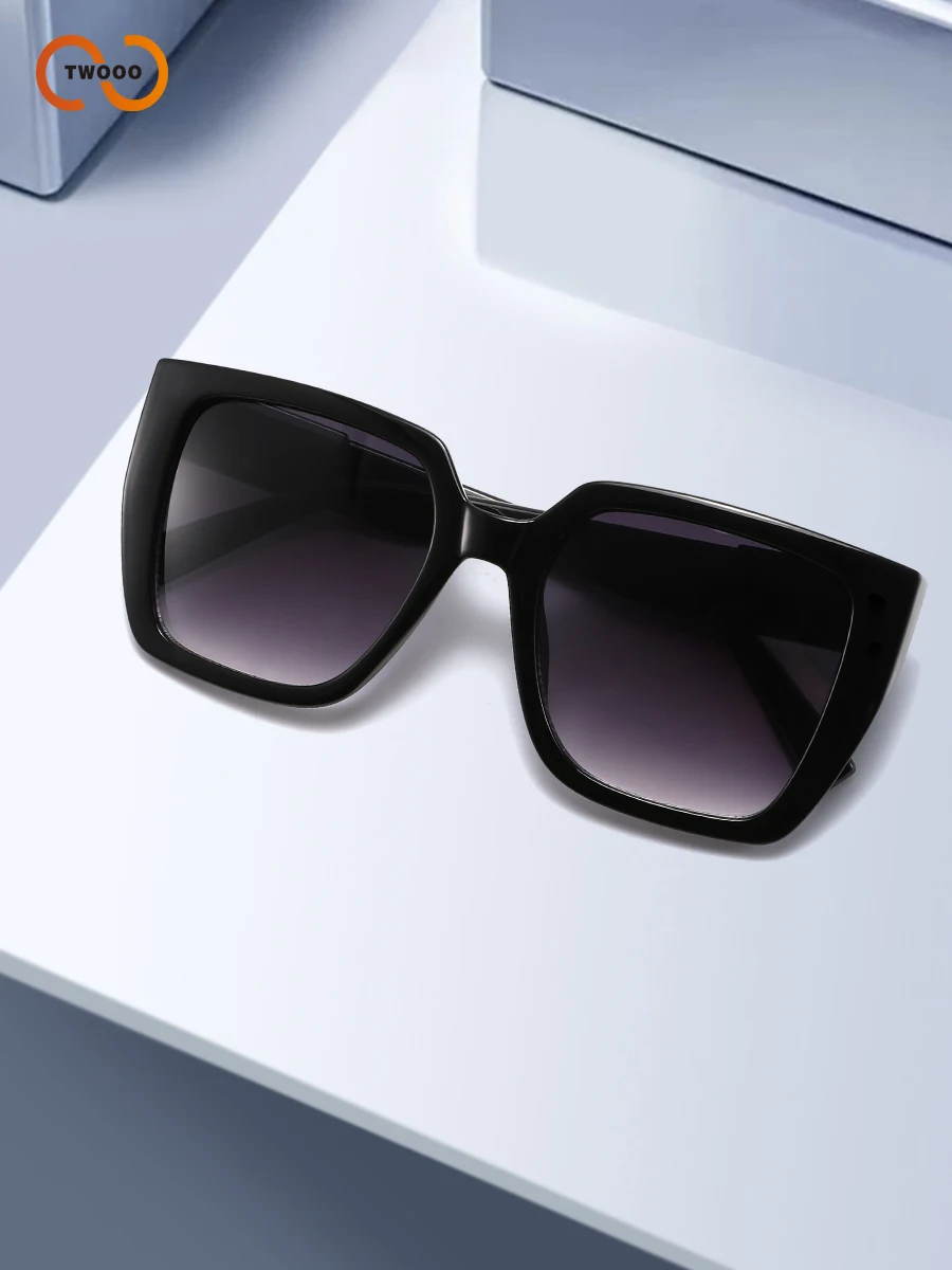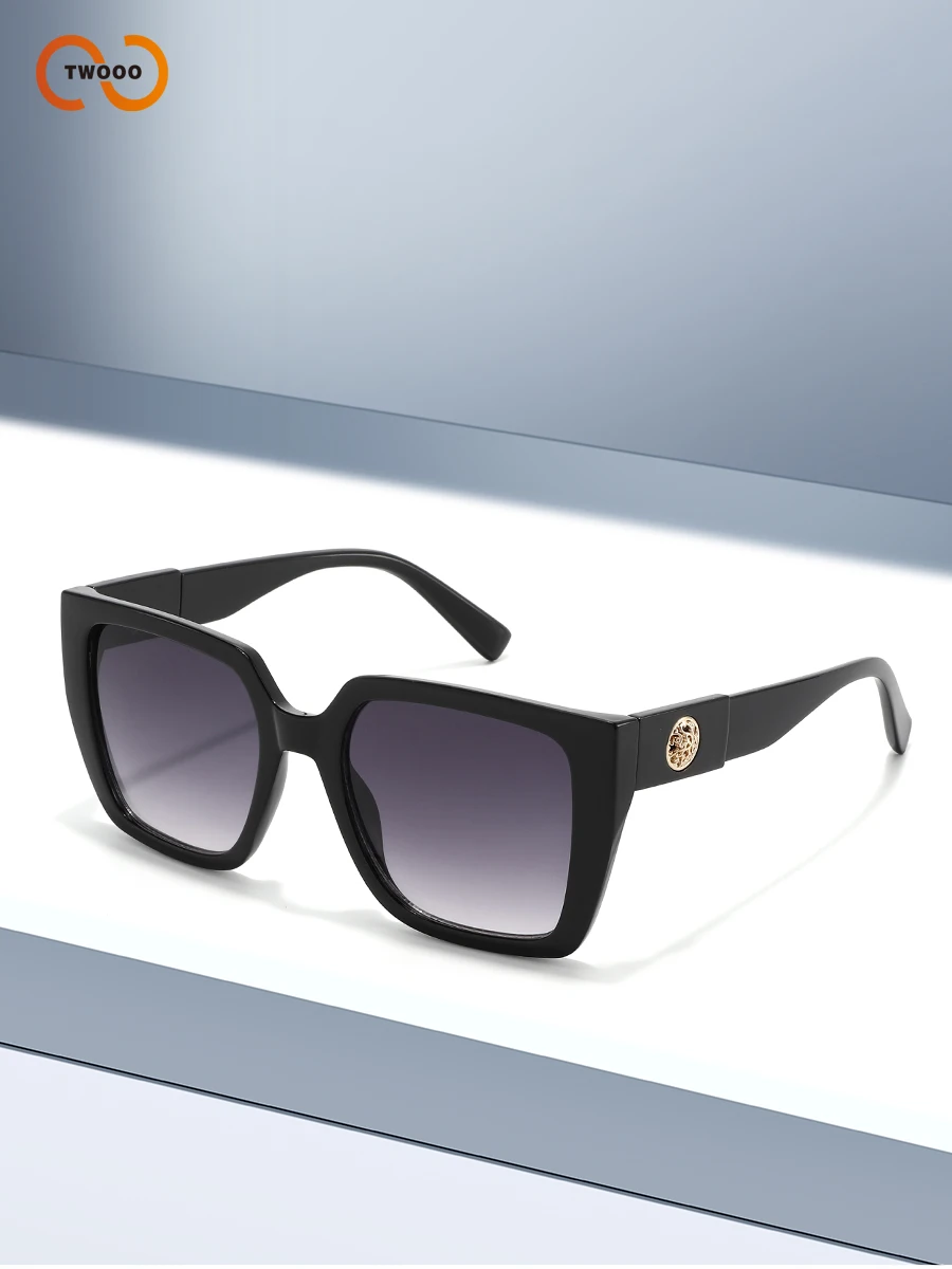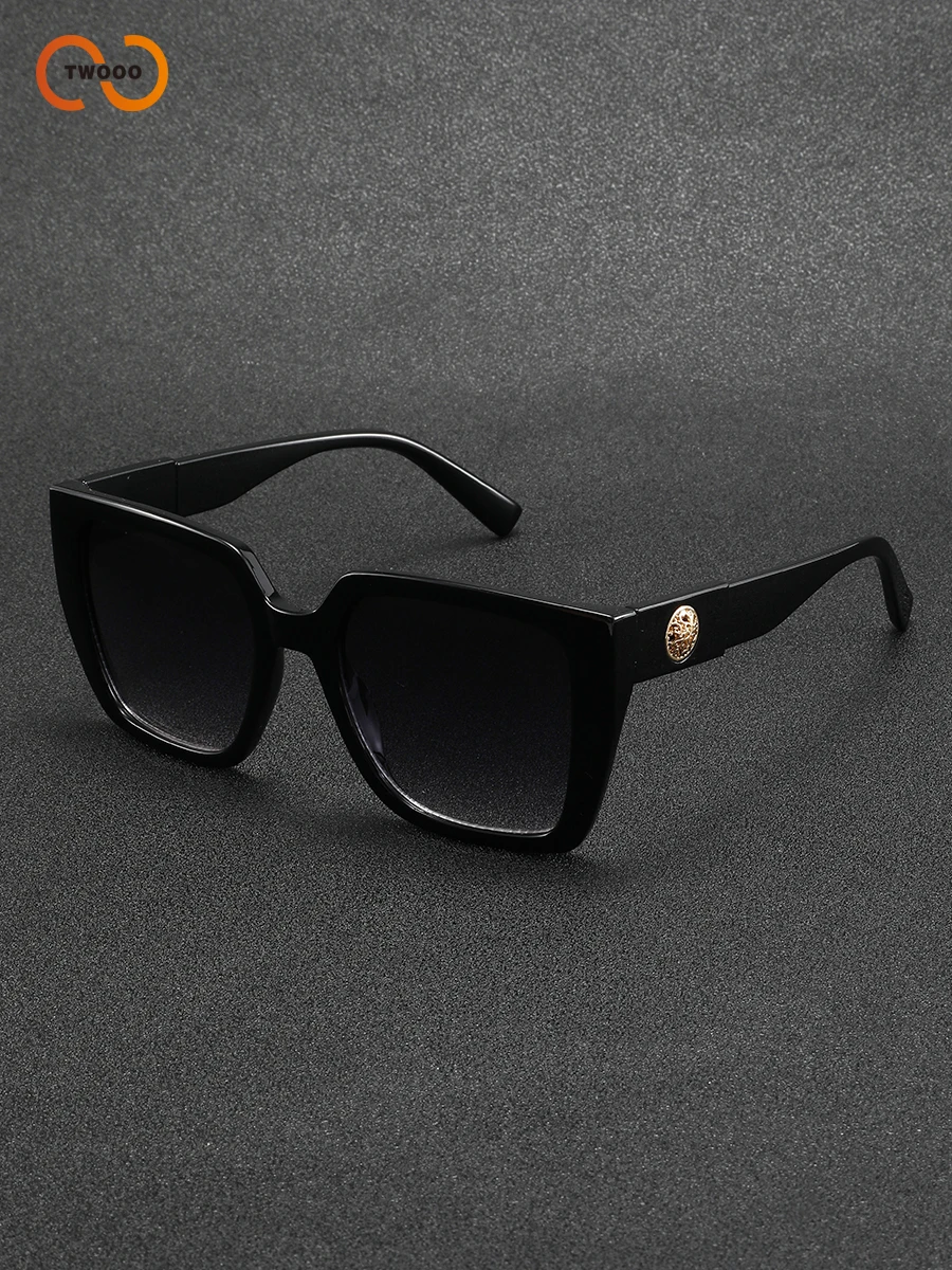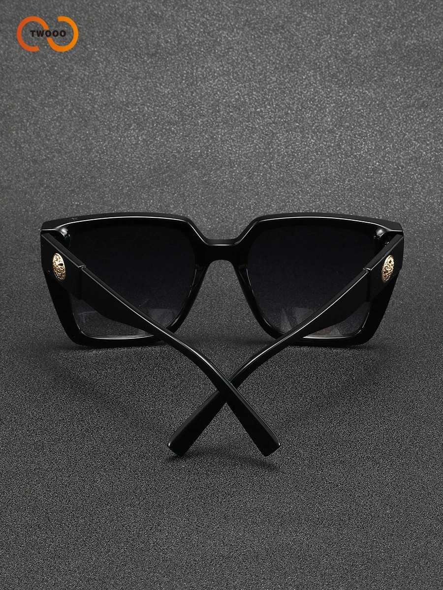 Lunettes de soleil carrées surdimensionnées pour femmes, monture épaisse rétro, Protection UV400, lentille dégradée HD avec médaillon doré, détail du temple
