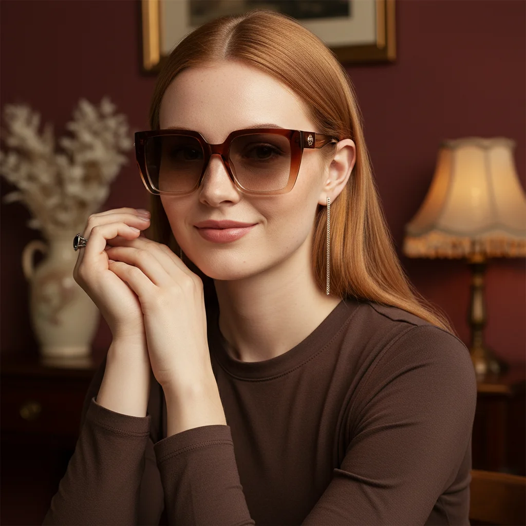 "Ces lunettes de soleil sont tout simplement magnifiques ! La monture épaisse et rétro leur donne un style vraiment unique et tendance. La qualité des matériaux est irréprochable, et la protection UV400 est un vrai plus. Les lentilles dégradées HD sont également superbes et offrent une vision impeccable. Le petit détail doré sur le temple est la cerise sur le gâteau ! Le seul bémol est que le médaillon doré se salit un peu facilement, mais un petit coup de chiffon suffit pour le remettre en état. Dans l'ensemble, c'est un achat que je recommande sans hésiter !"