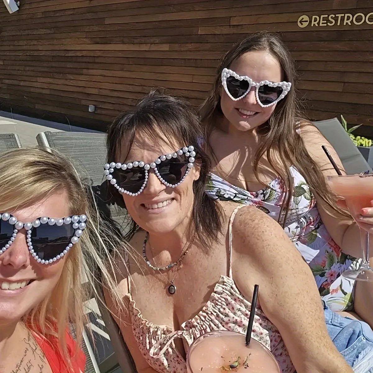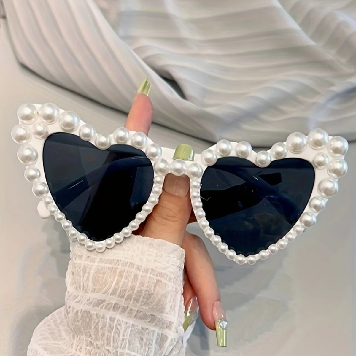 Lunettes de soleil chics en fausses perles en forme de cœur pour femme – Antireflet, parfaites pour les événements décontractés et les festivals de musique