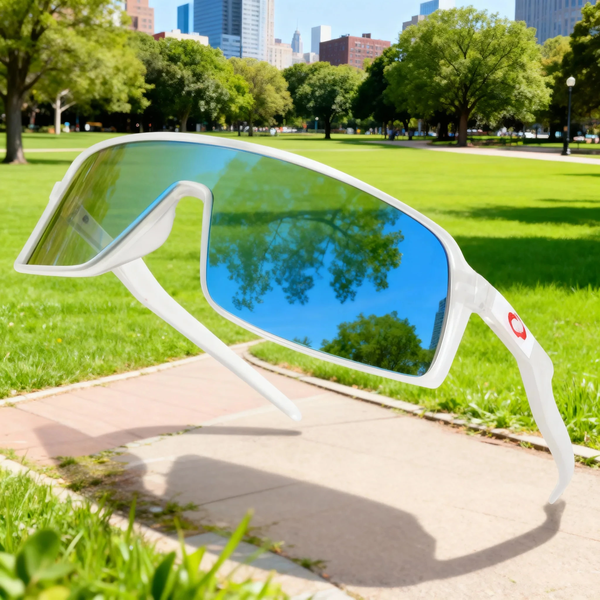 Lunettes de soleil de sport surdimensionnées élégantes, monture blanche, miroir bleu vert, Protection UV400 pour hommes et femmes, course en plein air, cyclisme, Golf