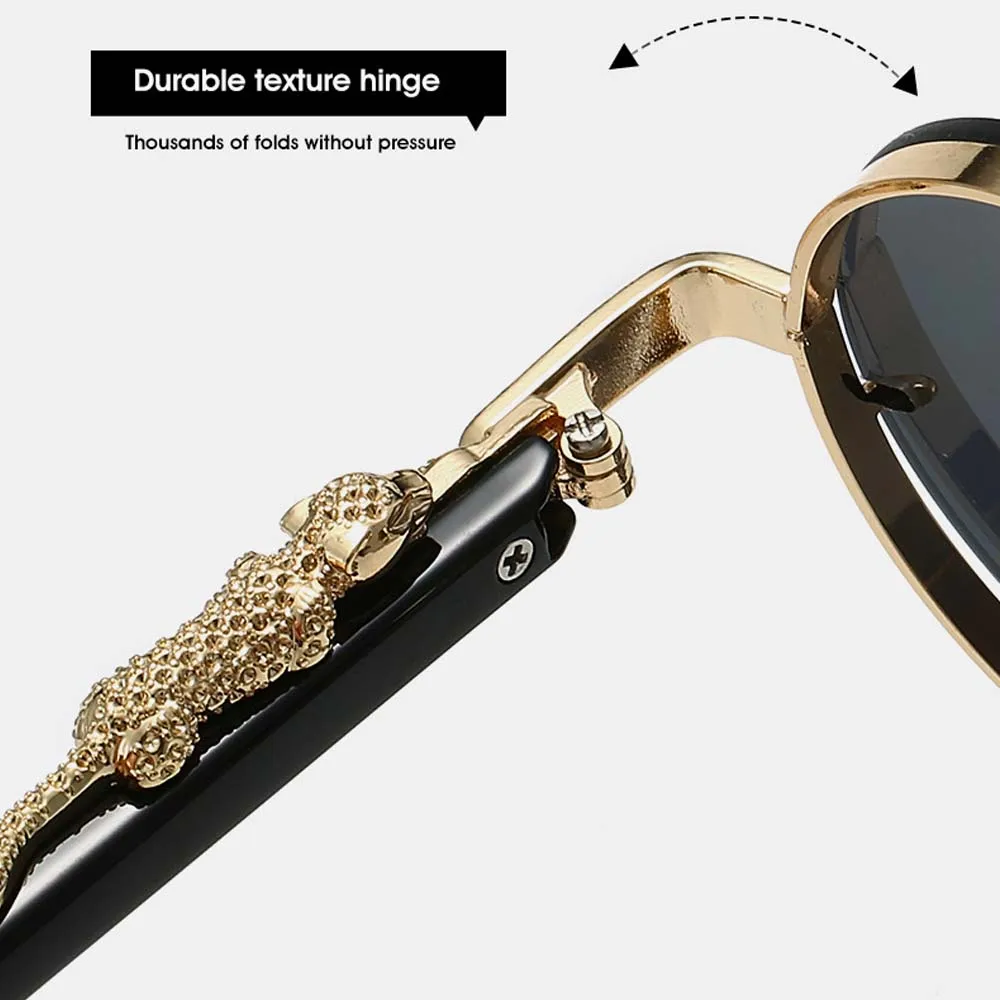 Lunettes de soleil en métal de Style Steampunk pour hommes avec jambes guépard femmes marque de luxe UV400 Protection des yeux lunettes de soleil nuances Vintage |
