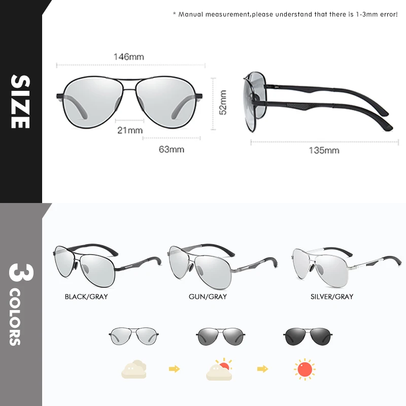 Lunettes de soleil photochromiques pilote de conception de marque classique hommes lunettes de soleil de conduite de sécurité polarisées femmes Anti-éblouissement gafas de sol hombre |