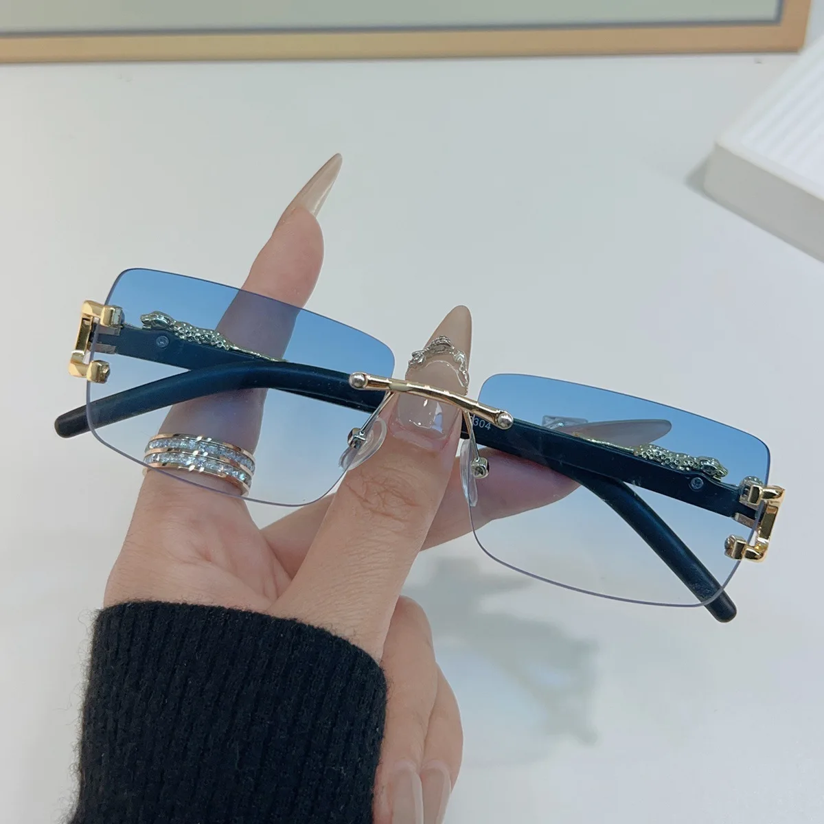 Lunettes de soleil rectangulaires personnalisées sans cadre pour femmes et hommes, 1 pièce, à la mode, pour la vie quotidienne, Vintage