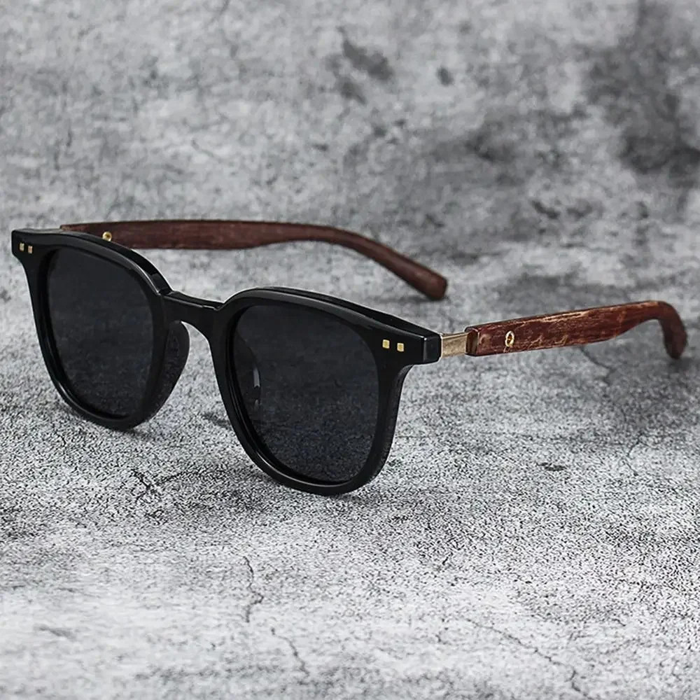 Lunettes de soleil rétro tendance en grain de bois – Protection UV polarisée pour hommes et femmes, parfaites pour le cyclisme et la photographie de rue en plein air