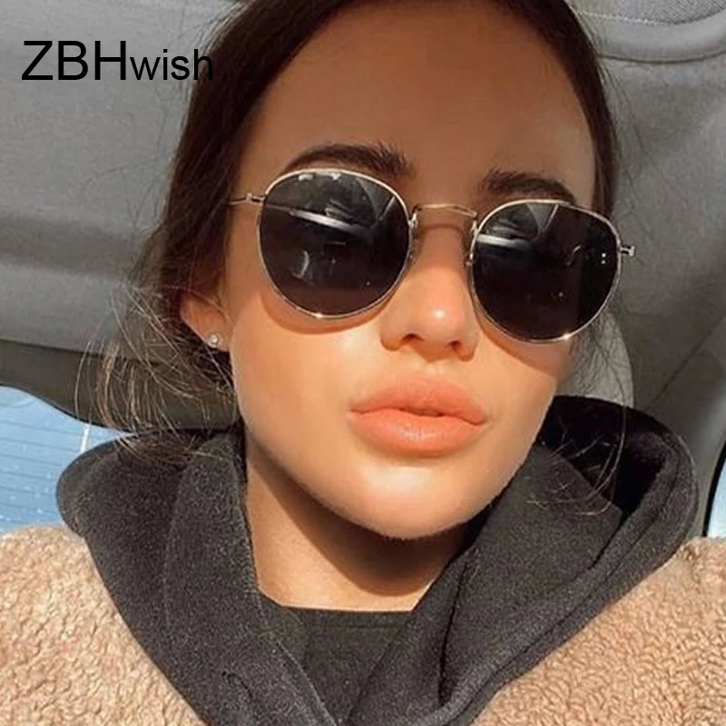 Lunettes de soleil rondes classiques Femme marque de mode Designer miroir en métal lunettes de soleil rétro petit cadre ovale Lunette Soleil Femme |